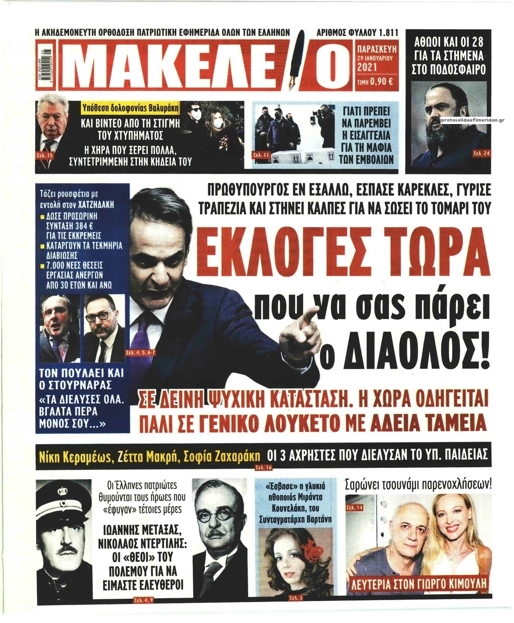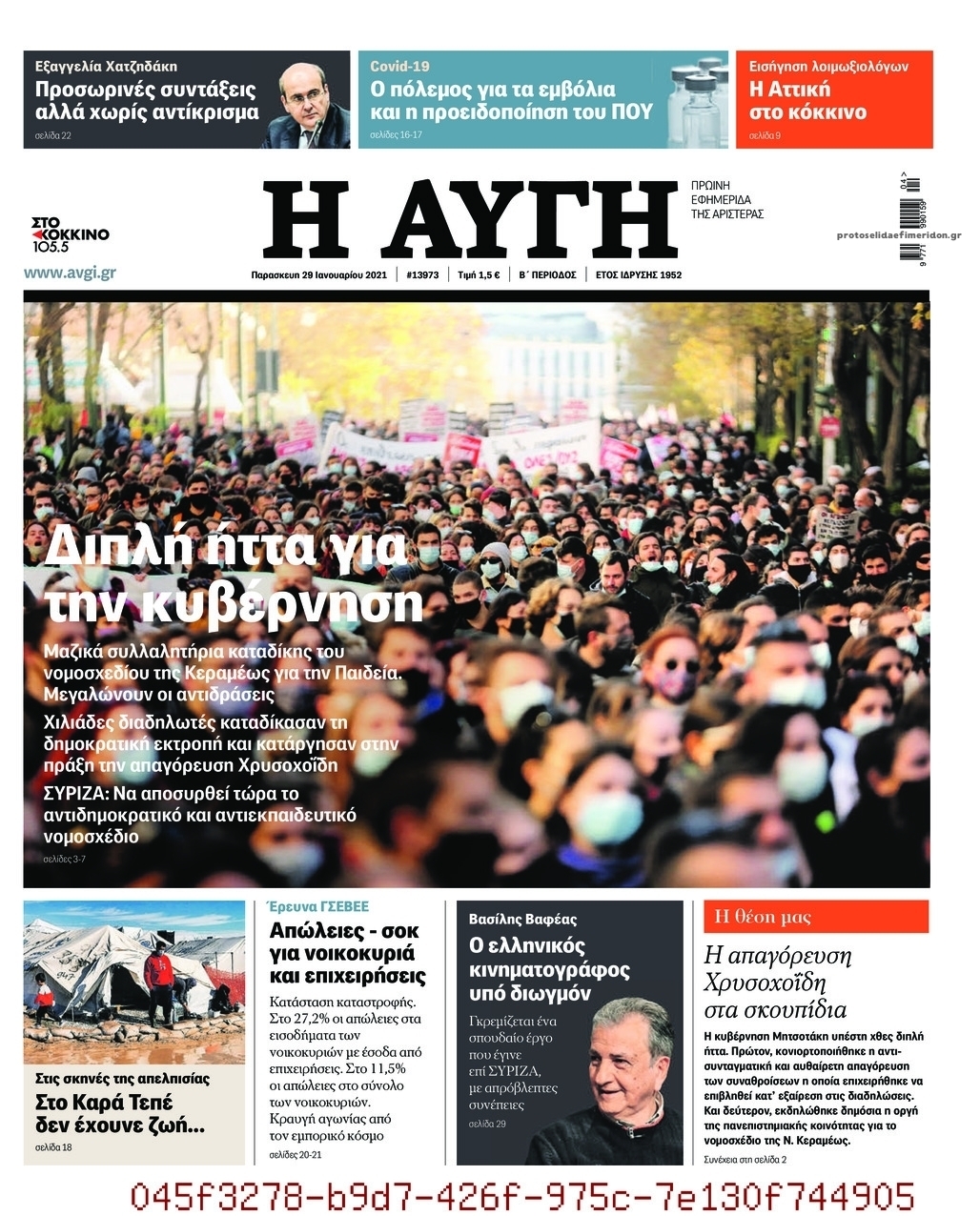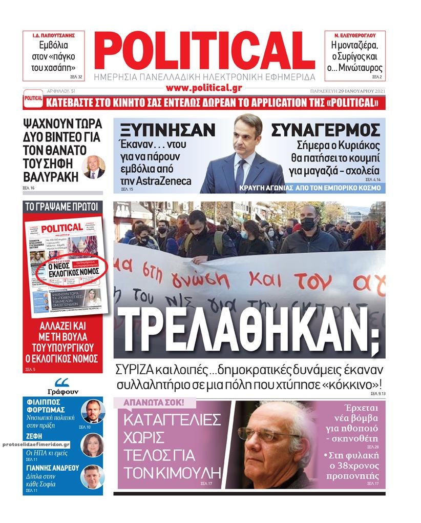 NewsMEDIASLIDER Διαβάστε όλα τα πρωτοσέλιδα των πολιτικών εφημερίδων της Παρασκευής 29 Ιανουαρίου 2021 FacebookXEmailViberWhatsAppCopy URLΤυπώνω Διαβάστε όλα τα πρωτοσέλιδα των πολιτικών εφημερίδων της Παρασκευής 29 Ιανουαρίου. Πλήρης ενημέρωση με μια γρήγορη ματιά!