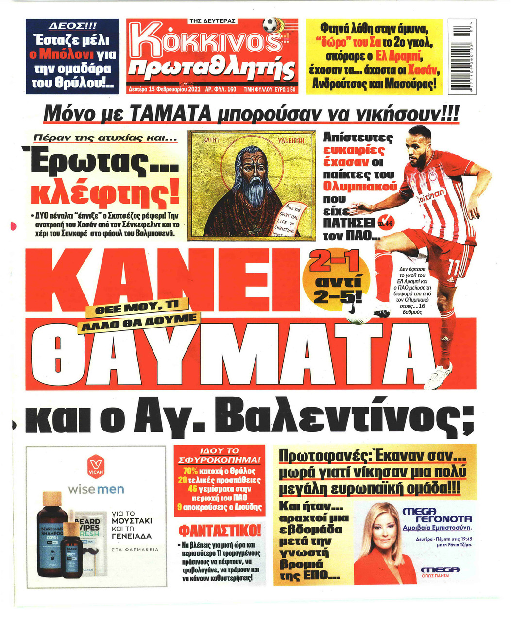 NewsMEDIA Διαβάστε όλα τα πρωτοσέλιδα των αθλητικών εφημερίδων της Δευτέρας 15 Φεβρουαρίου 2021 FacebookTwitterEmailViberWhatsAppCopy URLΤυπώνω Διαβάστε όλα τα πρωτοσέλιδα των αθλητικών εφημερίδων της Δευτέρας 15 Φεβρουαρίου. Πλήρης ενημέρωση με μια γρήγορη ματιά!