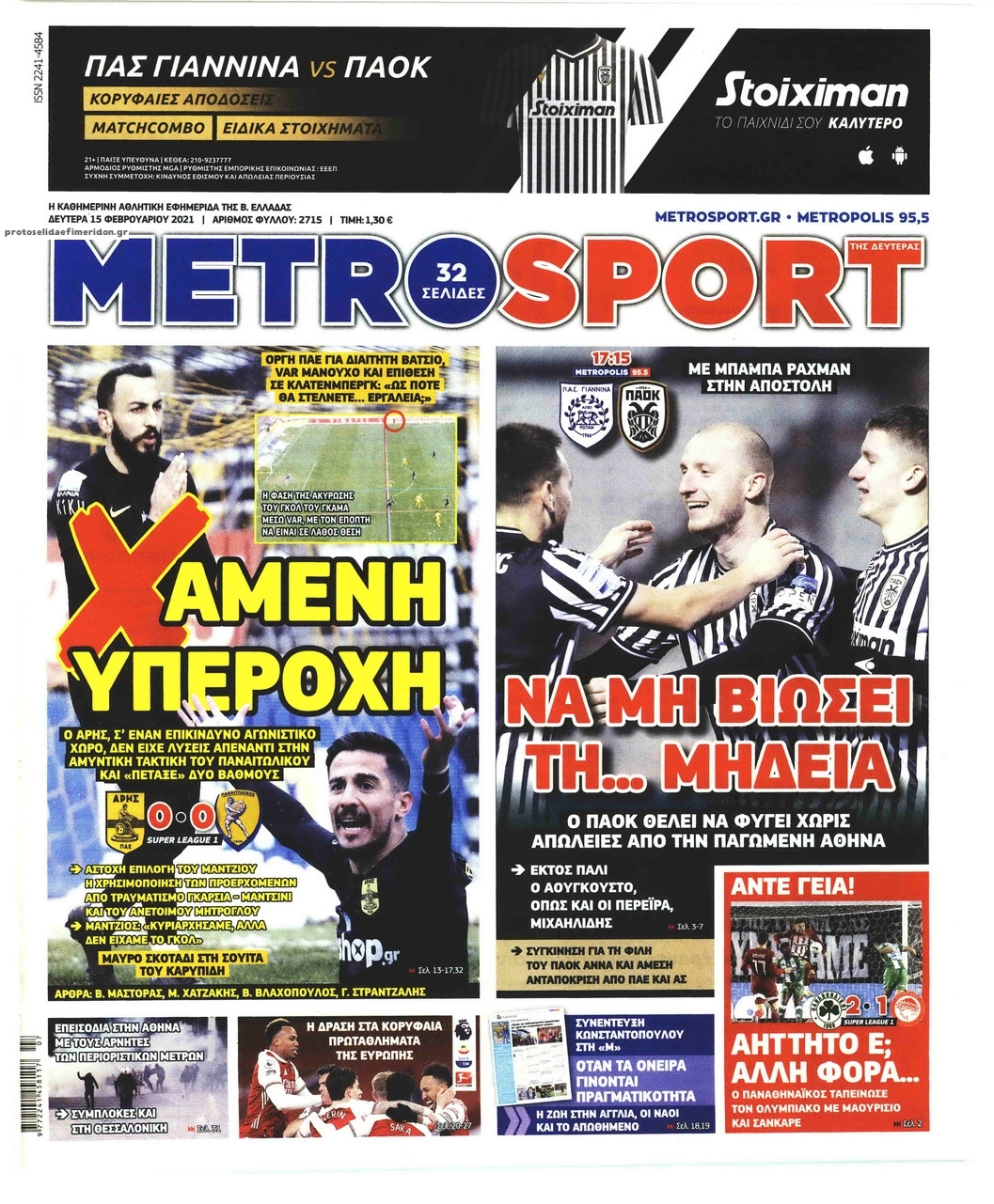 NewsMEDIA Διαβάστε όλα τα πρωτοσέλιδα των αθλητικών εφημερίδων της Δευτέρας 15 Φεβρουαρίου 2021 FacebookXEmailViberWhatsAppCopy URLΤυπώνω Διαβάστε όλα τα πρωτοσέλιδα των αθλητικών εφημερίδων της Δευτέρας 15 Φεβρουαρίου. Πλήρης ενημέρωση με μια γρήγορη ματιά!
