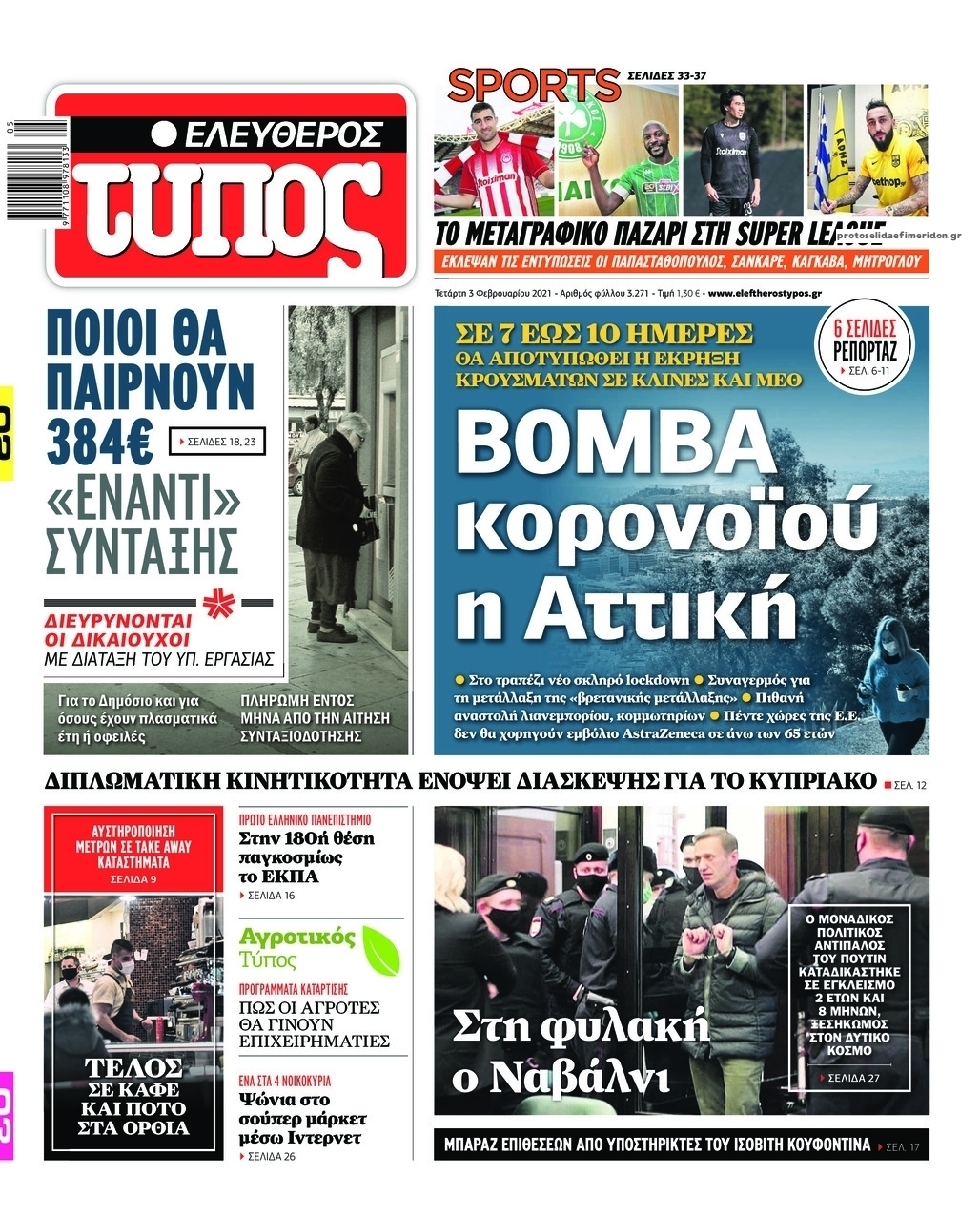 NewsMEDIA Διαβάστε όλα τα πρωτοσέλιδα των πολιτικών εφημερίδων της Τετάρτης 3 Φεβρουαρίου 2021 FacebookTwitterEmailViberWhatsAppCopy URLΤυπώνω Διαβάστε όλα τα πρωτοσέλιδα των πολιτικών εφημερίδων της Τετάρτης 3 Φεβρουαρίου. Πλήρης ενημέρωση με μια γρήγορη ματιά!