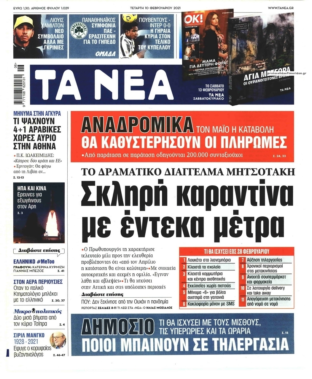 NewsMEDIA Διαβάστε όλα τα πρωτοσέλιδα των πολιτικών εφημερίδων της Τετάρτης 10 Φεβρουαρίου 2021 FacebookTwitterEmailViberWhatsAppCopy URLΤυπώνω Διαβάστε όλα τα πρωτοσέλιδα των πολιτικών εφημερίδων της Τετάρτης 10 Φεβρουαρίου. Πλήρης ενημέρωση με μια γρήγορη ματιά!