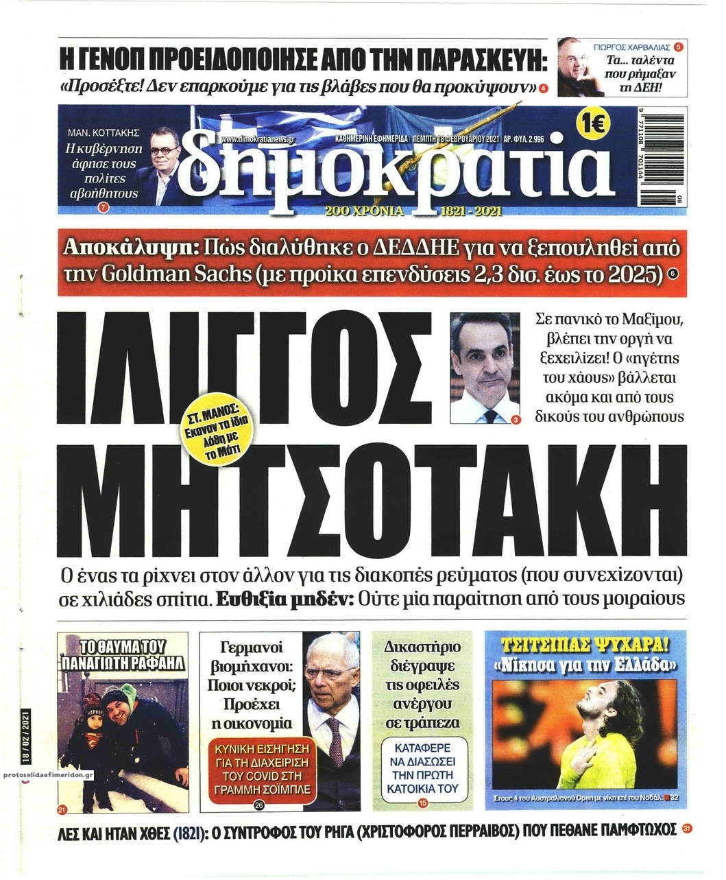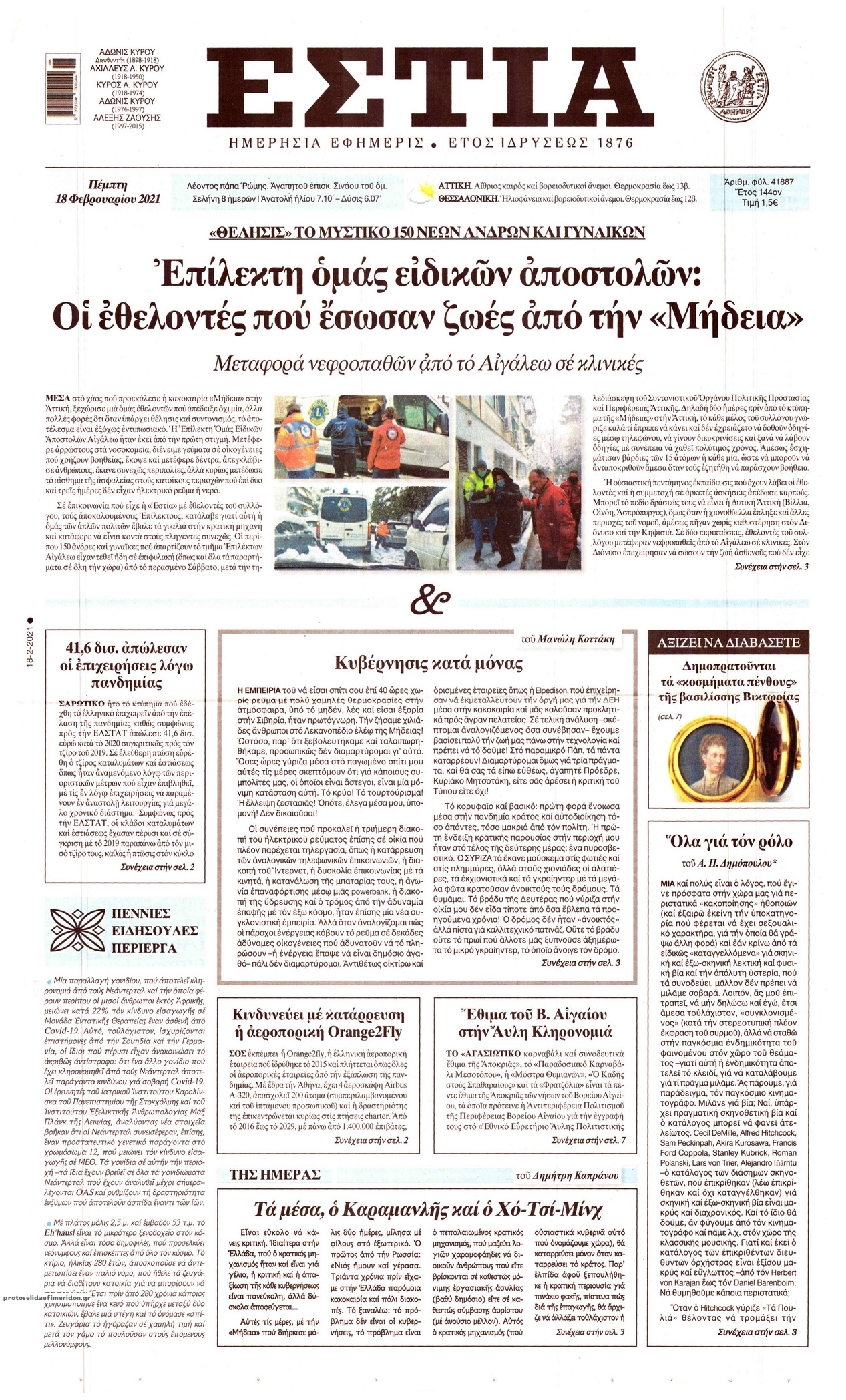NewsMEDIA Διαβάστε όλα τα πρωτοσέλιδα των πολιτικών εφημερίδων της Πέμπτης 18 Φεβρουαρίου 2021 FacebookXEmailViberWhatsAppCopy URLΤυπώνω Διαβάστε όλα τα πρωτοσέλιδα των πολιτικών εφημερίδων της Πέμπτης 18 Φεβρουαρίου. Πλήρης ενημέρωση με μια γρήγορη ματιά!