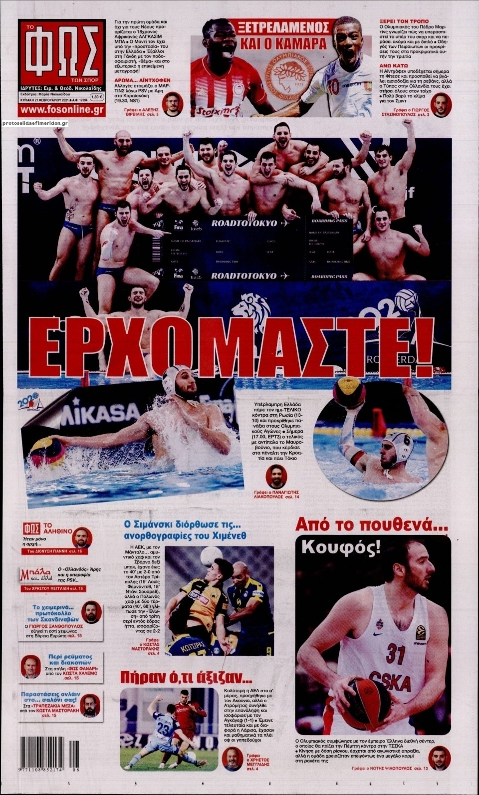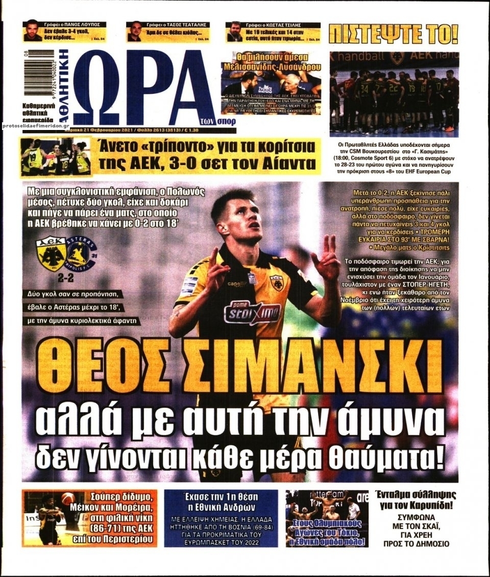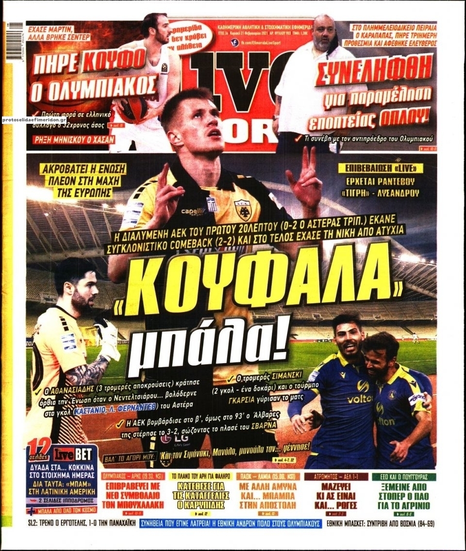 NewsMEDIA Διαβάστε όλα τα πρωτοσέλιδα των αθληιτικών εφημερίδων της Κυριακής 21 Φεβρουαρίου 2021 FacebookTwitterEmailViberWhatsAppCopy URLΤυπώνω Διαβάστε όλα τα πρωτοσέλιδα των αθληιτικών εφημερίδων της Κυριακής 21 Φεβρουαρίου. Πλήρης ενημέρωση με μια γρήγορη ματιά!