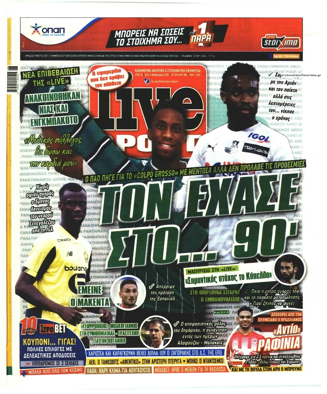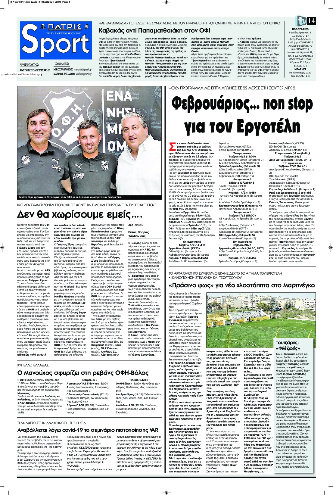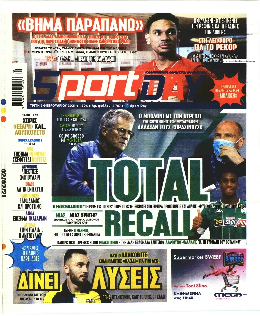 NewsMEDIA Διαβάστε όλα τα πρωτοσέλιδα των αθλητικών εφημερίδων της Τρίτης 2 Φεβρουαρίου 2021 FacebookXEmailViberWhatsAppCopy URLΤυπώνω Διαβάστε όλα τα πρωτοσέλιδα των αθλητικών εφημερίδων της Τρίτης 2 Φεβρουαρίου. Πλήρης ενημέρωση με μια γρήγορη ματιά!