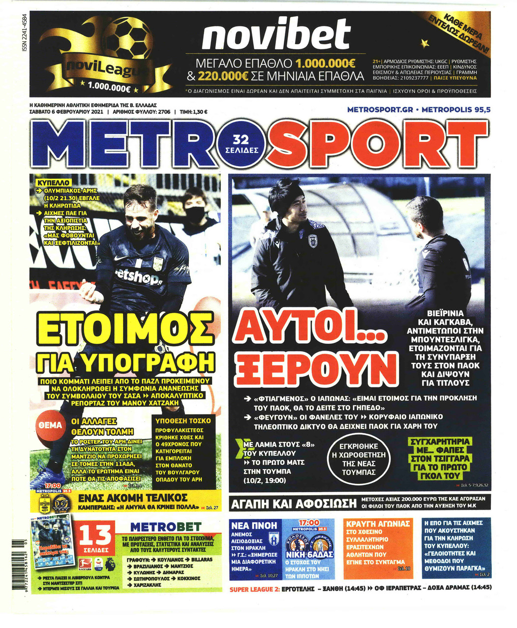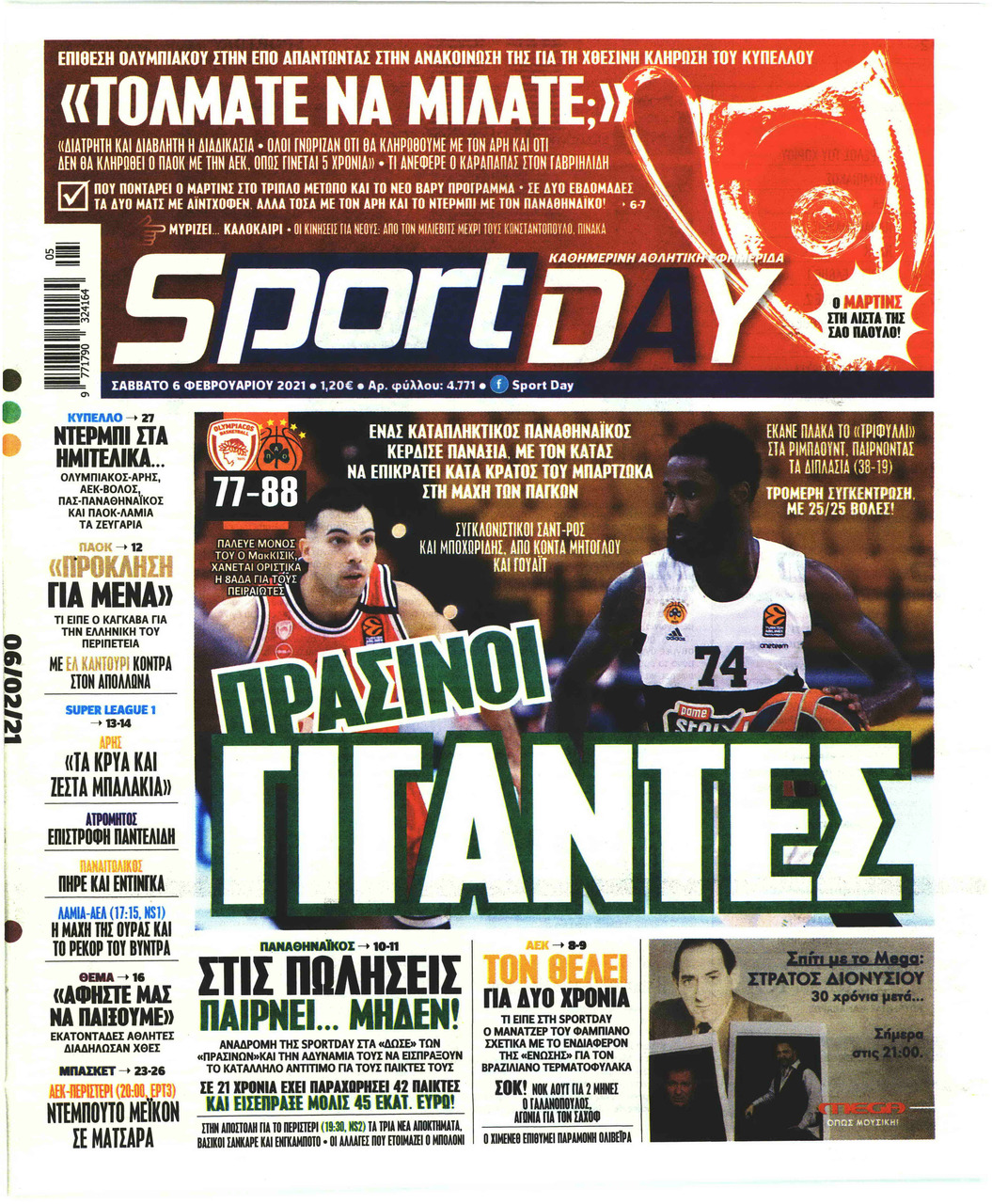 NewsMEDIA Διαβάστε όλα τα πρωτοσέλιδα των αθλητικών εφημερίδων του Σαββάτου 6 Φεβρουαρίου 2021 FacebookTwitterEmailViberWhatsAppCopy URLΤυπώνω Διαβάστε όλα τα πρωτοσέλιδα των αθλητικών εφημερίδων του Σαββάτου 6 Φεβρουαρίου. Πλήρης ενημέρωση με μια γρήγορη ματιά!