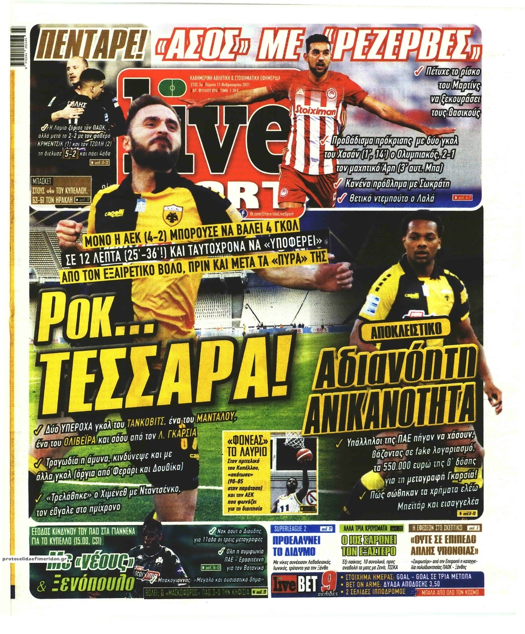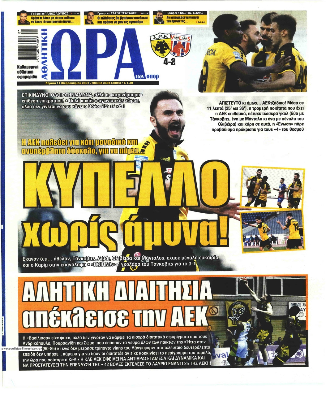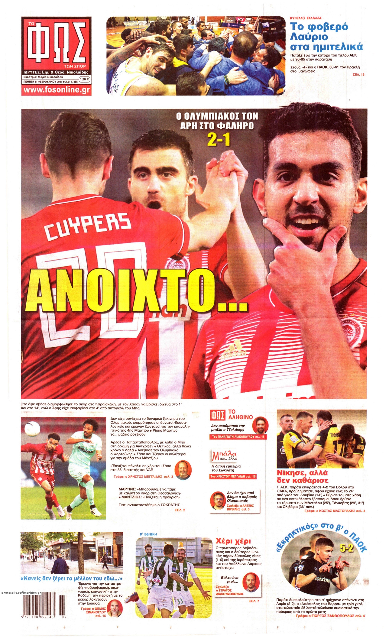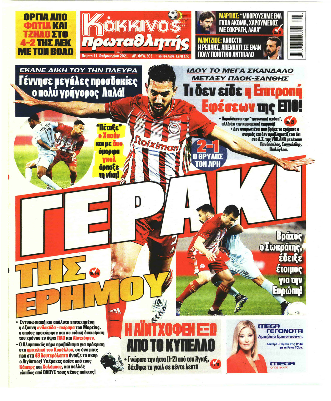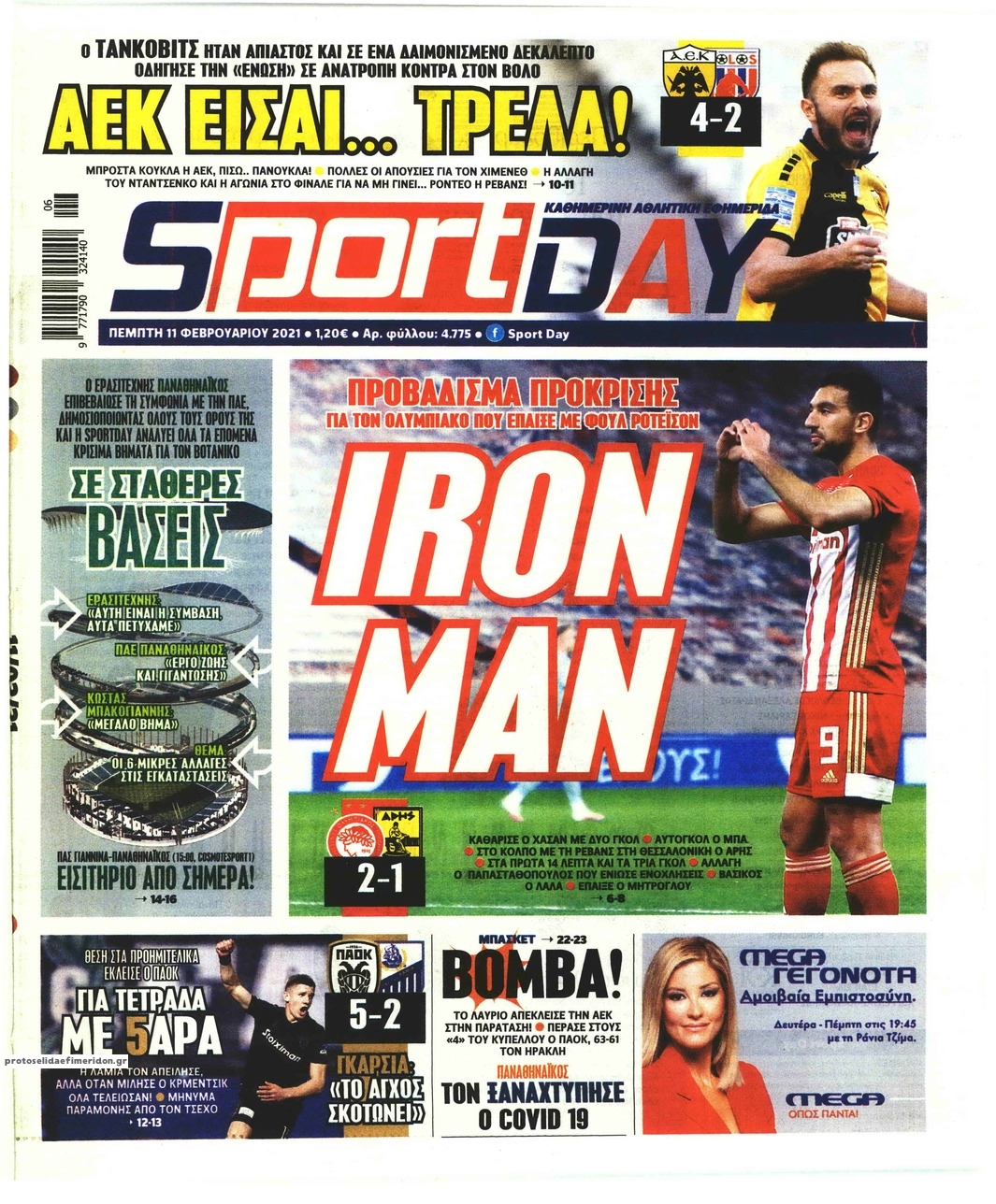 NewsMEDIA Διαβάστε όλα τα πρωτοσέλιδα των αθλητικών εφημερίδων της Πέμπτης 11 Φεβρουαρίου 2021 FacebookTwitterEmailViberWhatsAppCopy URLΤυπώνω Διαβάστε όλα τα πρωτοσέλιδα των αθλητικών εφημερίδων της Πέμπτης 11 Φεβρουαρίου. Πλήρης ενημέρωση με μια γρήγορη ματιά!