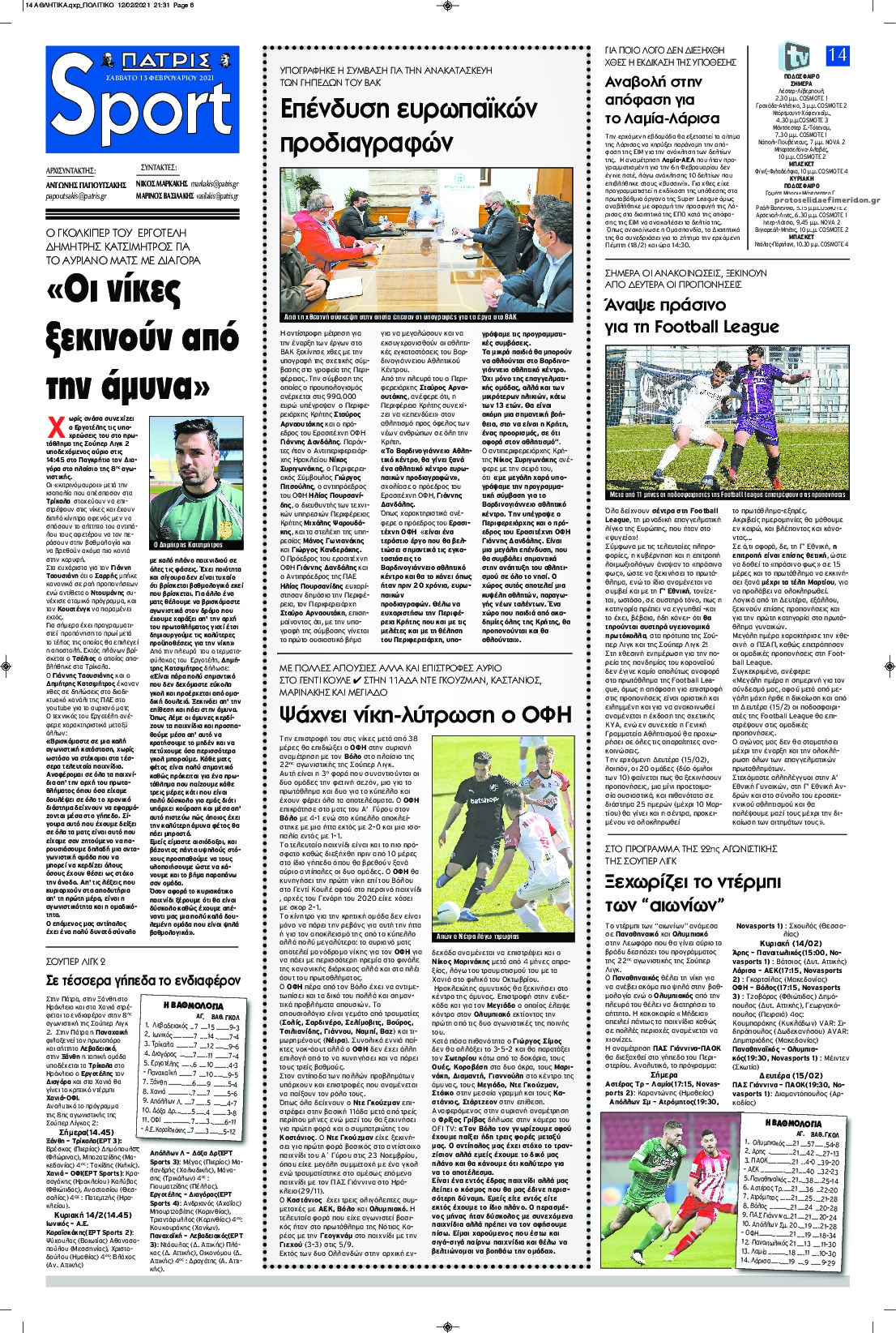 NewsMEDIA Διαβάστε όλα τα πρωτοσέλιδα των αθλητικών εφημερίδων του Σαββάτου 13 Φεβρουαρίου 2021 FacebookTwitterEmailViberWhatsAppCopy URLΤυπώνω Διαβάστε όλα τα πρωτοσέλιδα των αθλητικών εφημερίδων του Σαββάτου 13 Φεβρουαρίου. Πλήρης ενημέρωση με μια γρήγορη ματιά!