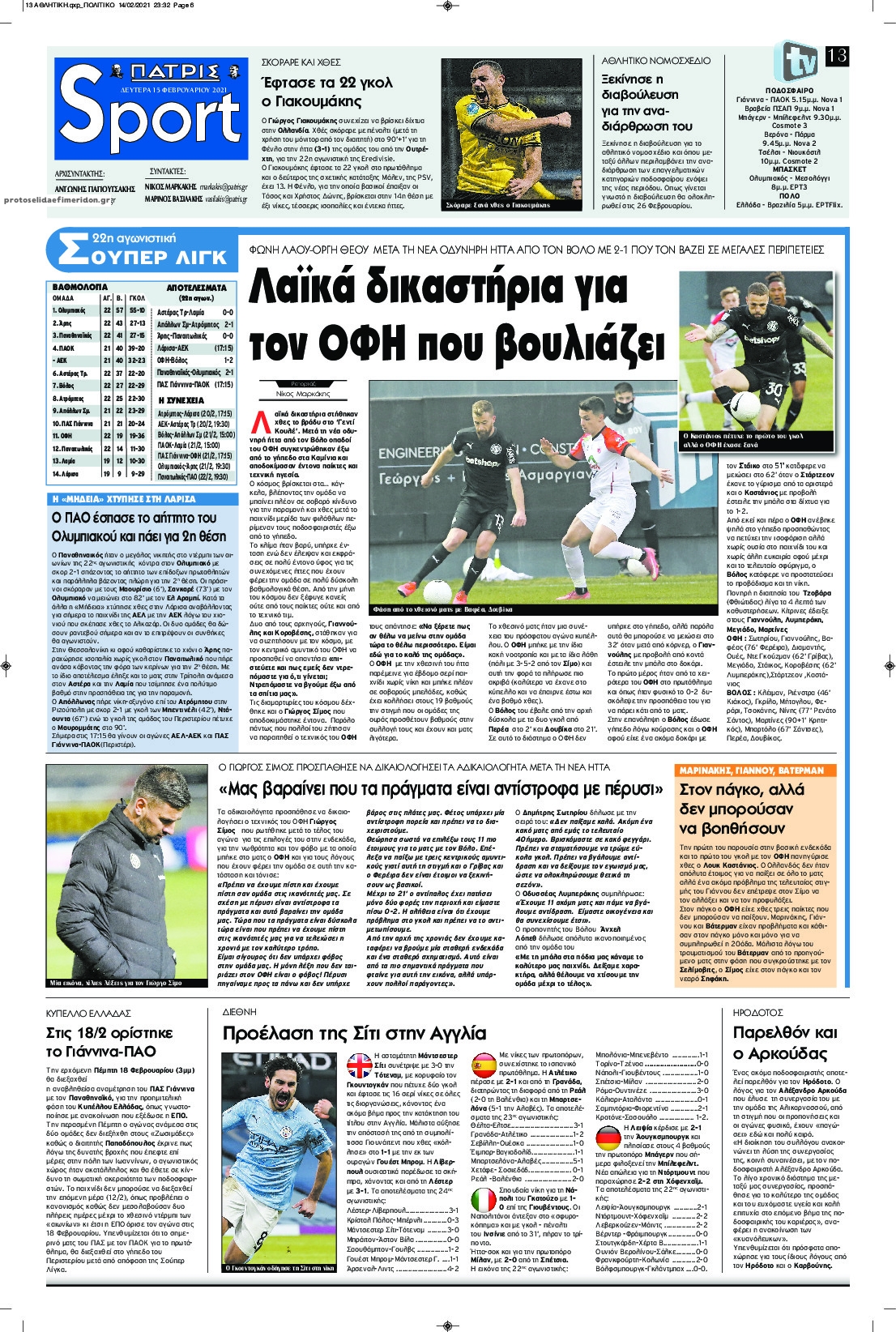 NewsMEDIA Διαβάστε όλα τα πρωτοσέλιδα των αθλητικών εφημερίδων της Δευτέρας 15 Φεβρουαρίου 2021 FacebookXEmailViberWhatsAppCopy URLΤυπώνω Διαβάστε όλα τα πρωτοσέλιδα των αθλητικών εφημερίδων της Δευτέρας 15 Φεβρουαρίου. Πλήρης ενημέρωση με μια γρήγορη ματιά!