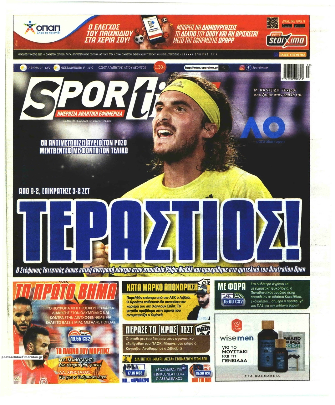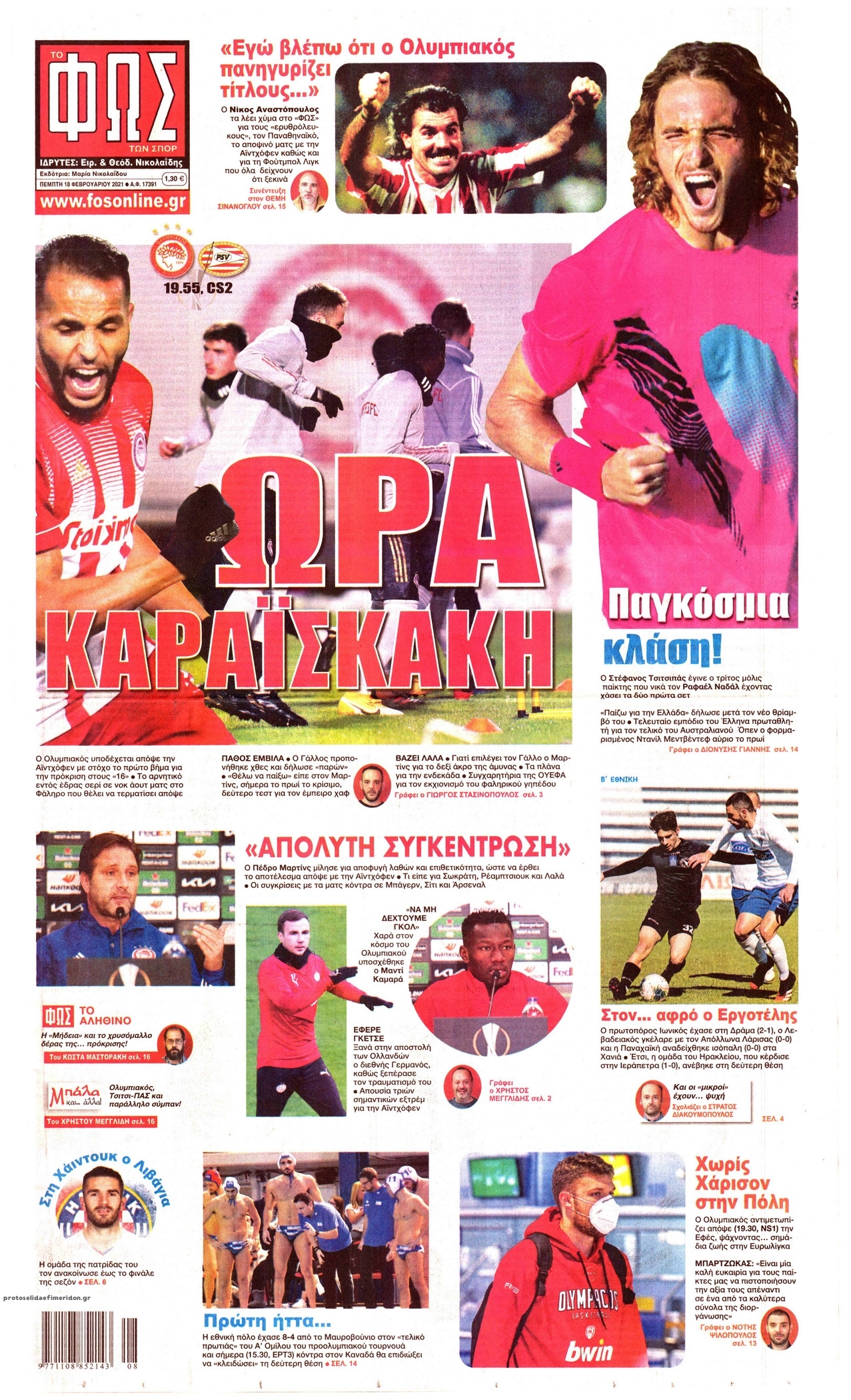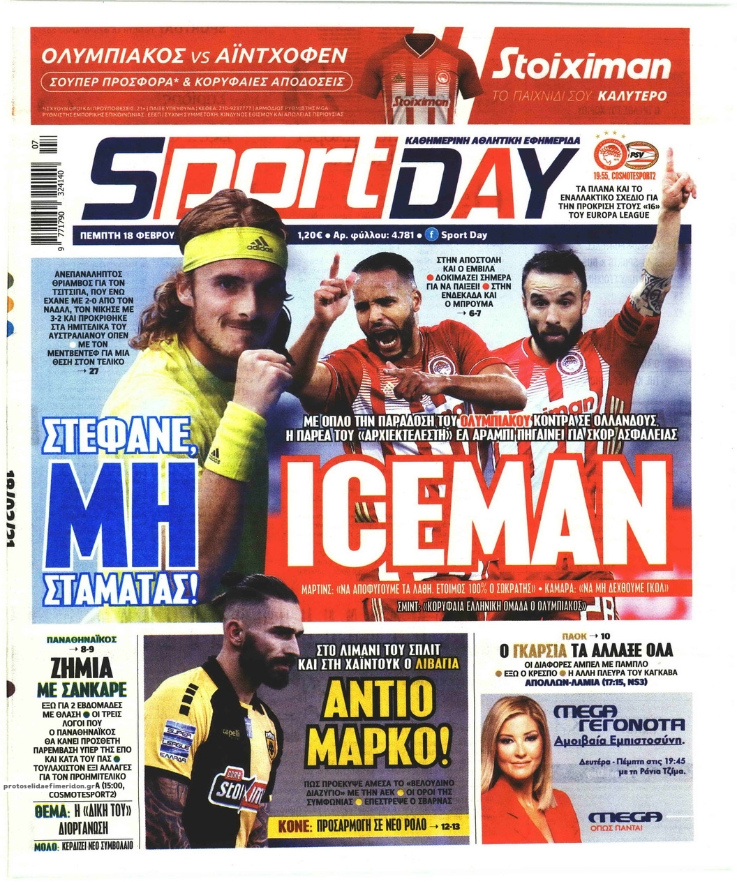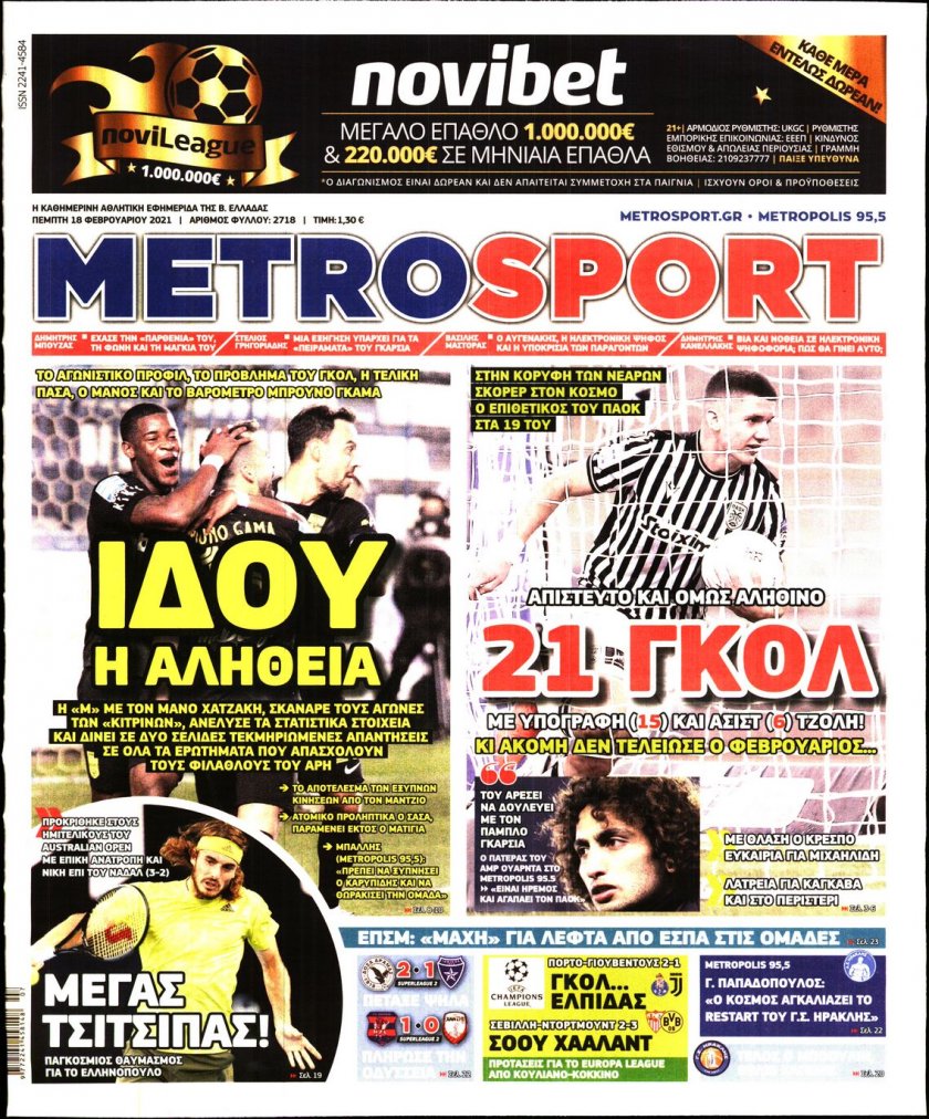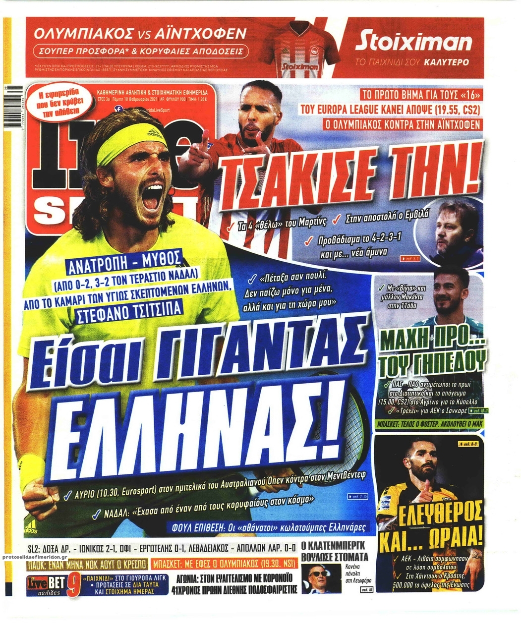 NewsMEDIA Διαβάστε όλα τα πρωτοσέλιδα των αθλητικών εφημερίδων της Πέμπτης 18 Φεβρουαρίου 2021 FacebookTwitterEmailViberWhatsAppCopy URLΤυπώνω Διαβάστε όλα τα πρωτοσέλιδα των αθλητικών εφημερίδων της Πέμπτης 18 Φεβρουαρίου. Πλήρης ενημέρωση με μια γρήγορη ματιά!
