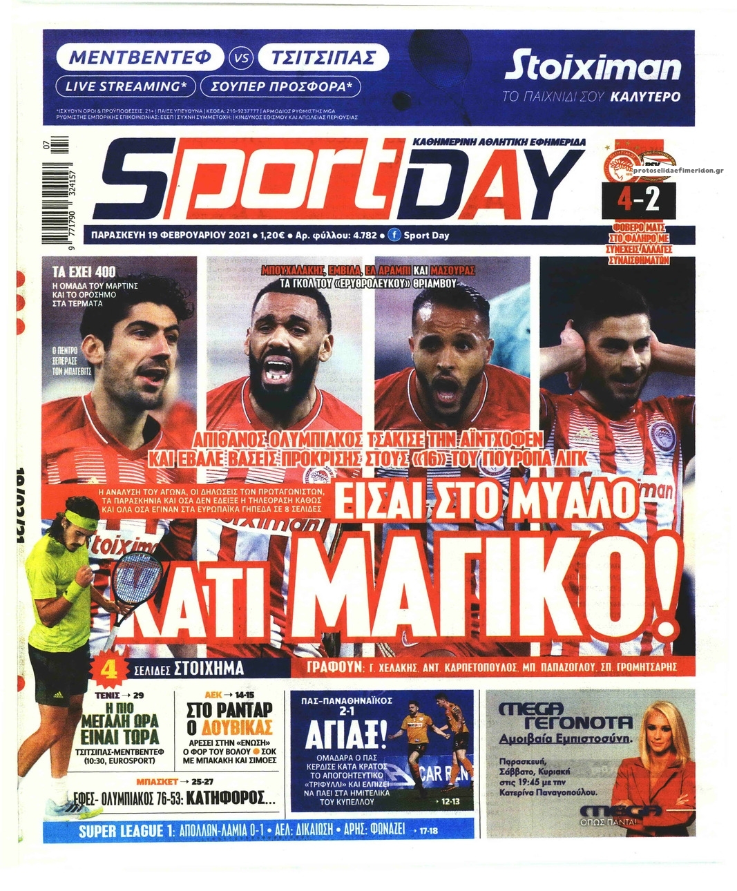 NewsMEDIA Διαβάστε όλα τα πρωτοσέλιδα των αθλητικών εφημερίδων της Παρασκευής 19 Φεβρουαρίου 2021 FacebookTwitterEmailViberWhatsAppCopy URLΤυπώνω Διαβάστε όλα τα πρωτοσέλιδα των αθλητικών εφημερίδων της Παρασκευής 19 Φεβρουαρίου. Πλήρης ενημέρωση με μια γρήγορη ματιά!
