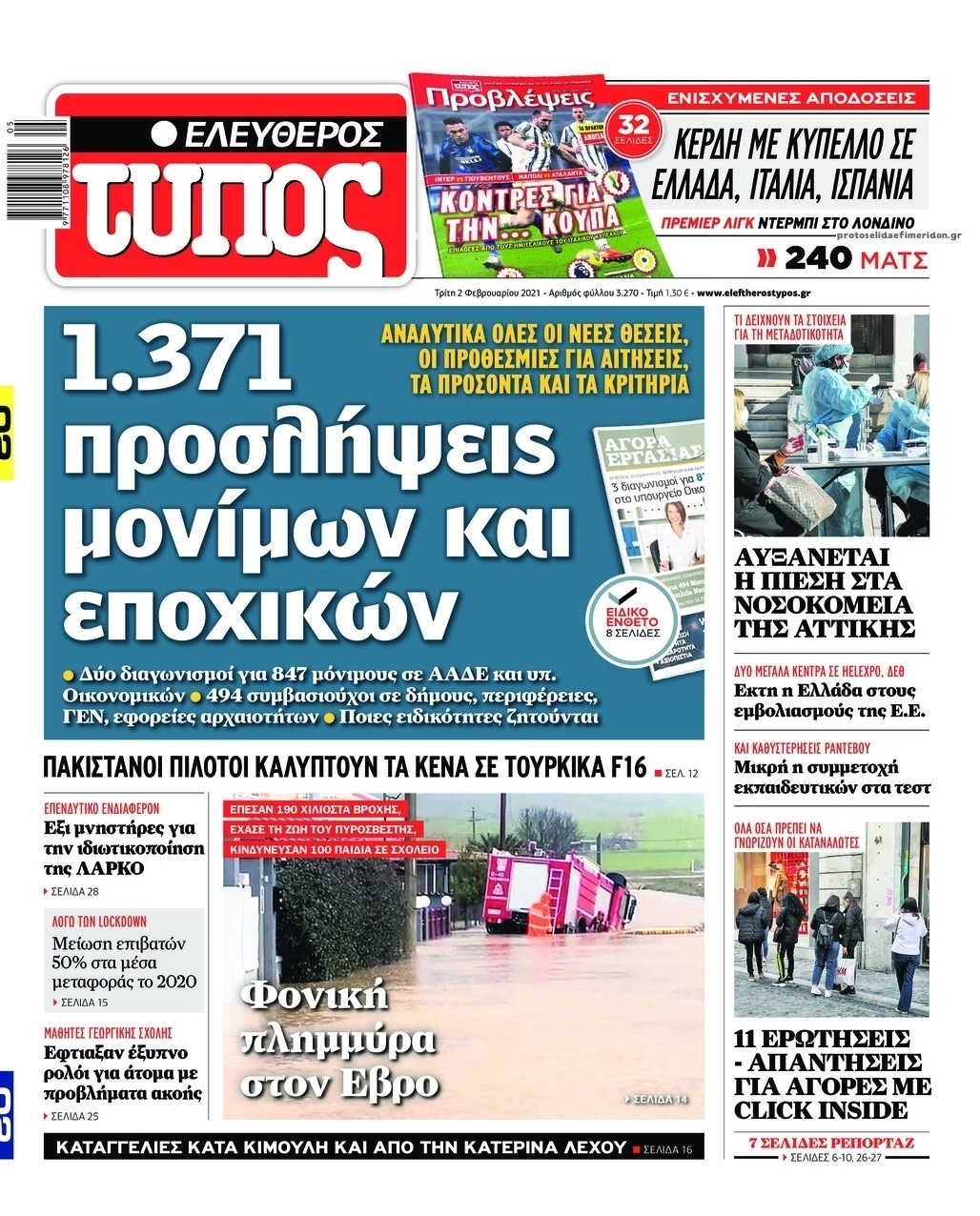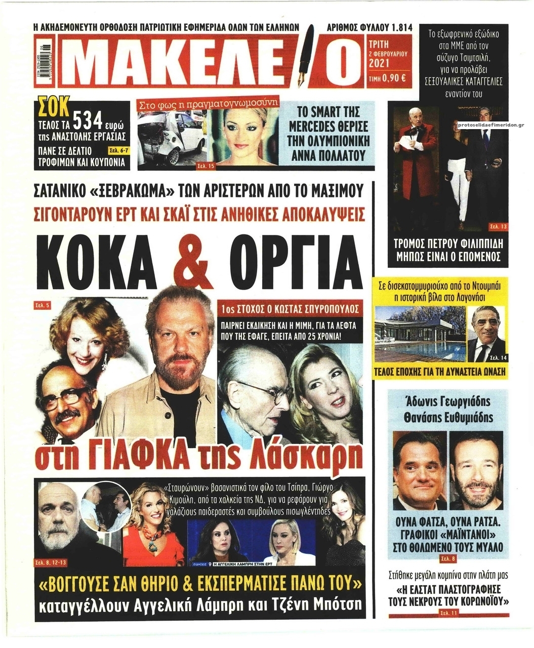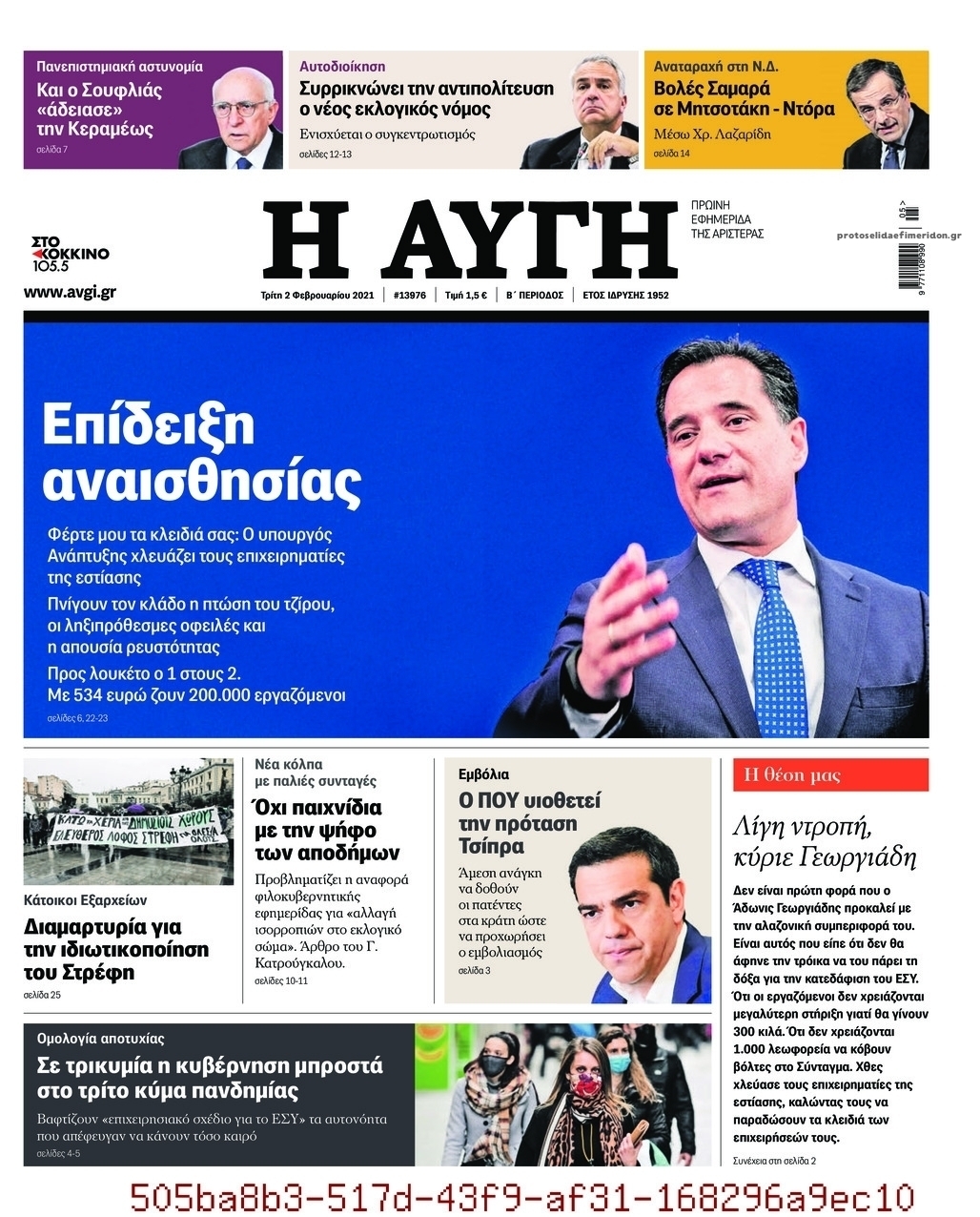 NewsMEDIASLIDER Διαβάστε όλα τα πρωτοσέλιδα των πολιτικών εφημερίδων της Τρίτης 2 Φεβρουαρίου 2021 FacebookXEmailViberWhatsAppCopy URLΤυπώνω Διαβάστε όλα τα πρωτοσέλιδα των πολιτικών εφημερίδων της Τρίτης 2 Φεβρουαρίου. Πλήρης ενημέρωση με μια γρήγορη ματιά!