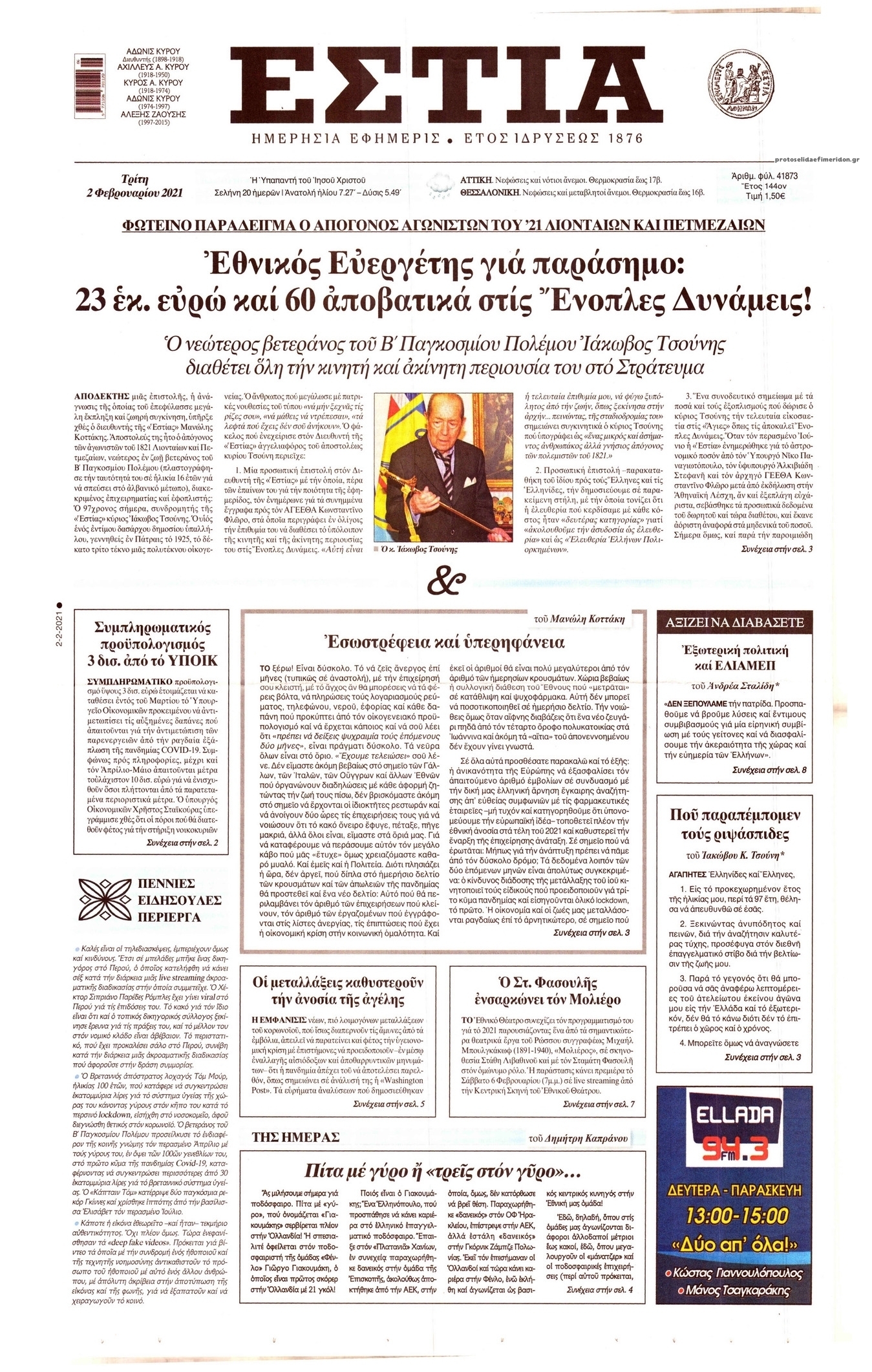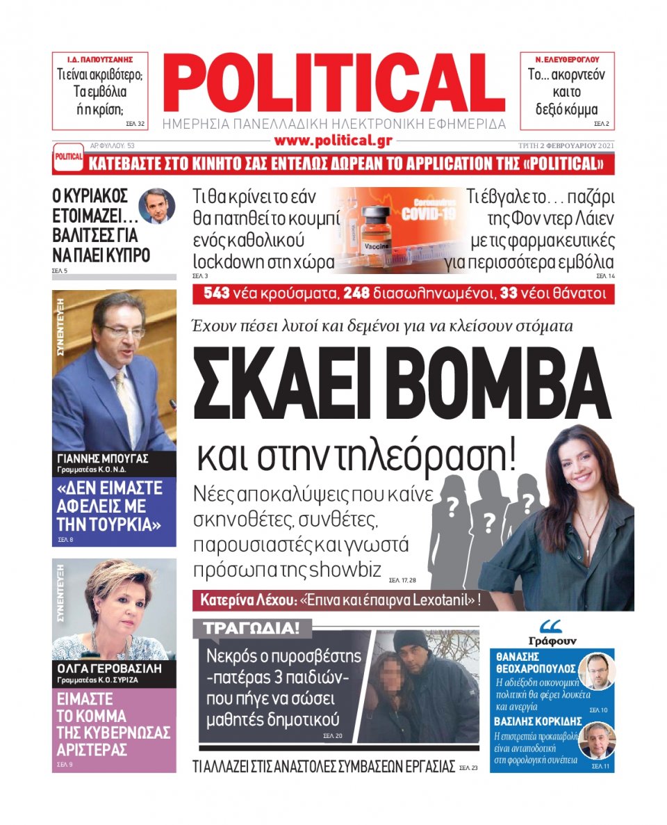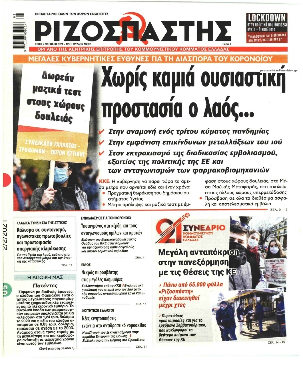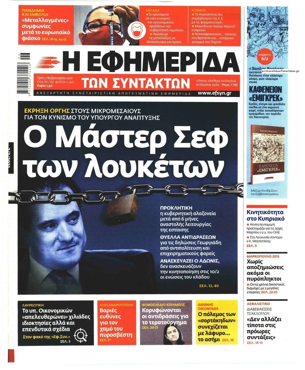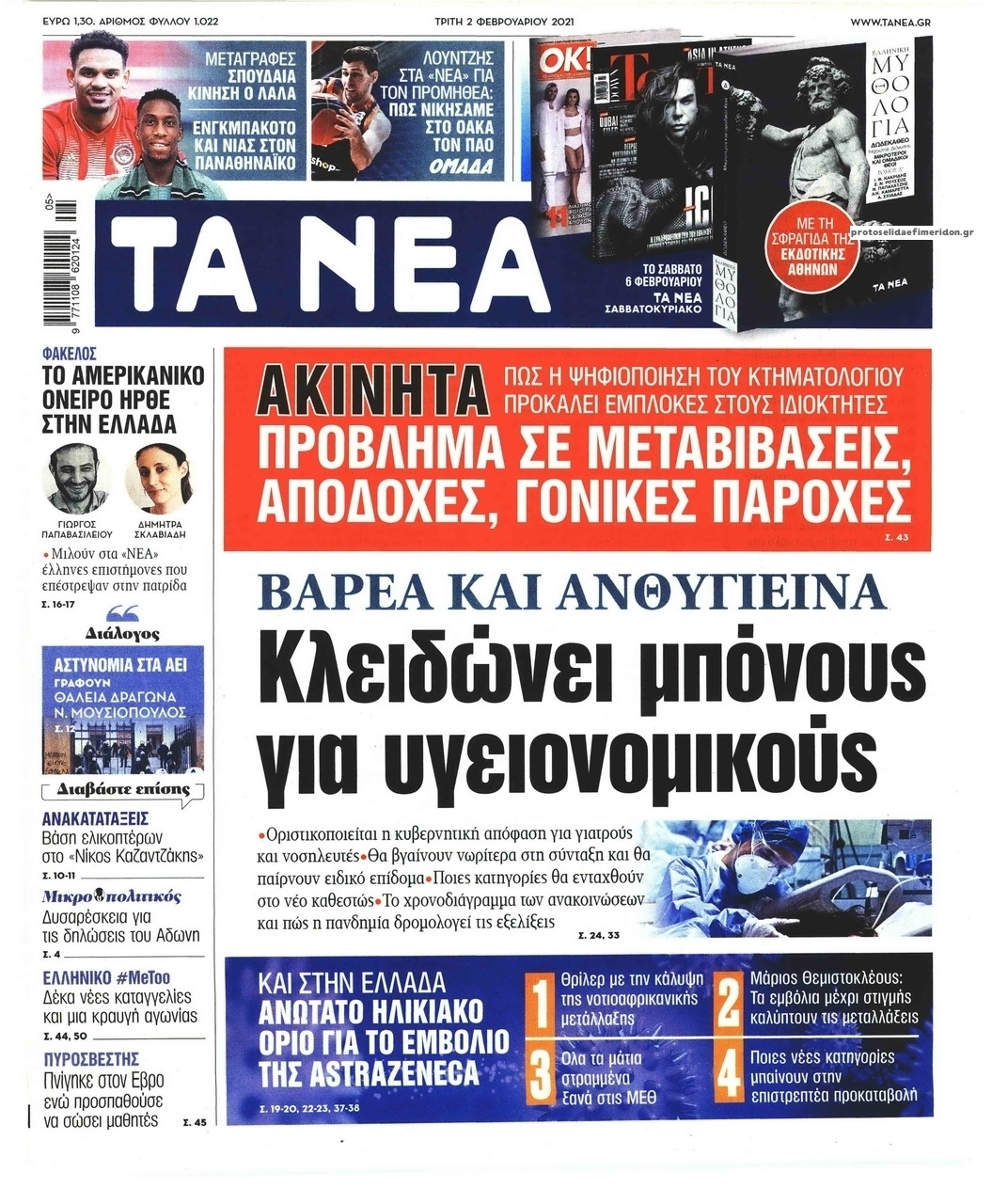 NewsMEDIASLIDER Διαβάστε όλα τα πρωτοσέλιδα των πολιτικών εφημερίδων της Τρίτης 2 Φεβρουαρίου 2021 FacebookTwitterEmailViberWhatsAppCopy URLΤυπώνω Διαβάστε όλα τα πρωτοσέλιδα των πολιτικών εφημερίδων της Τρίτης 2 Φεβρουαρίου. Πλήρης ενημέρωση με μια γρήγορη ματιά!