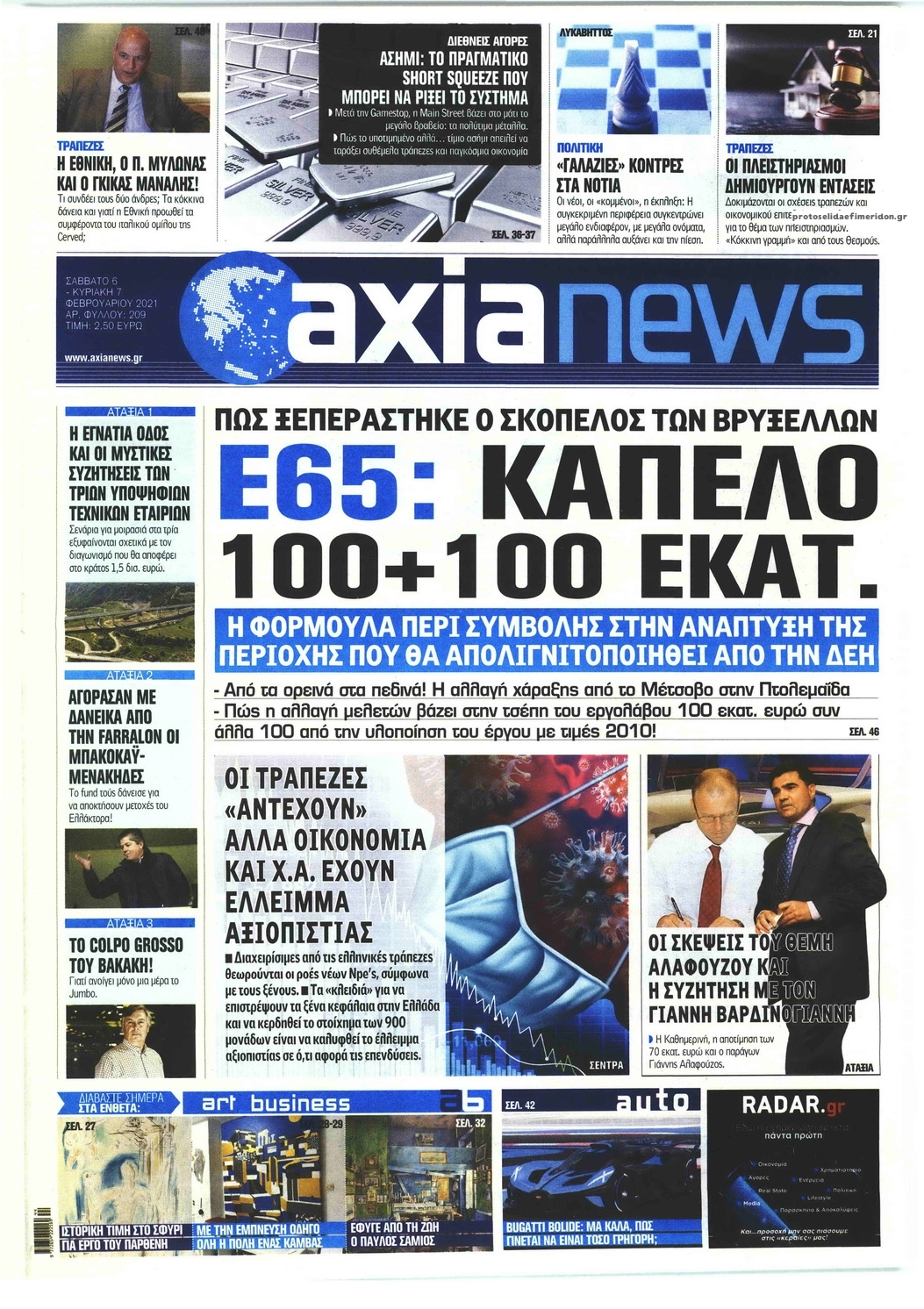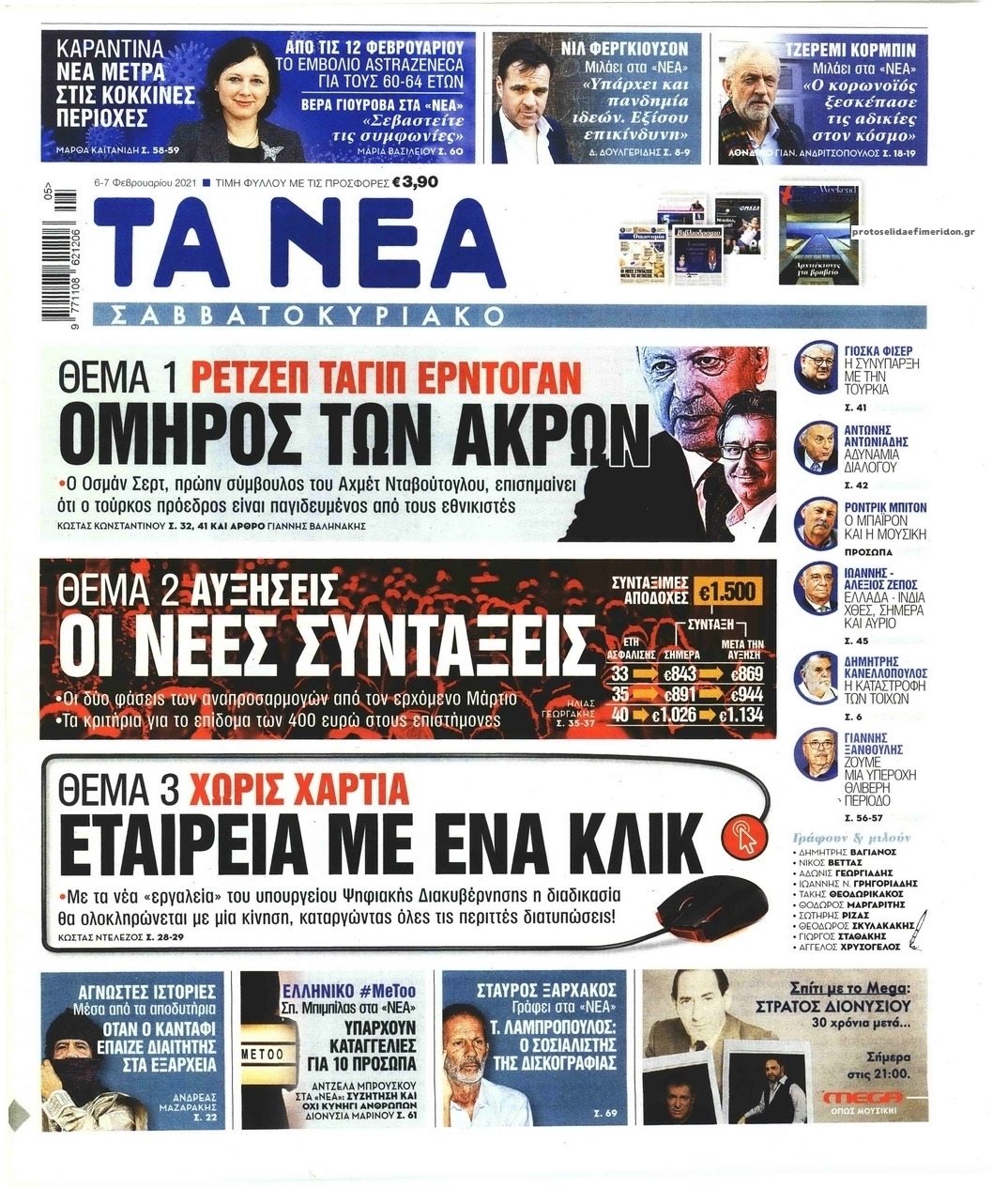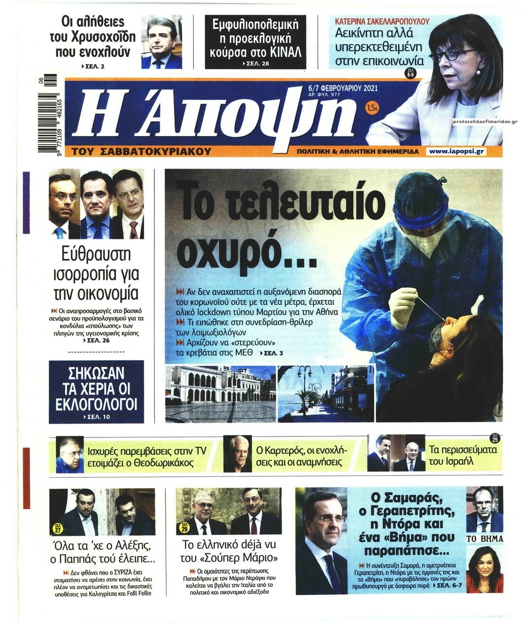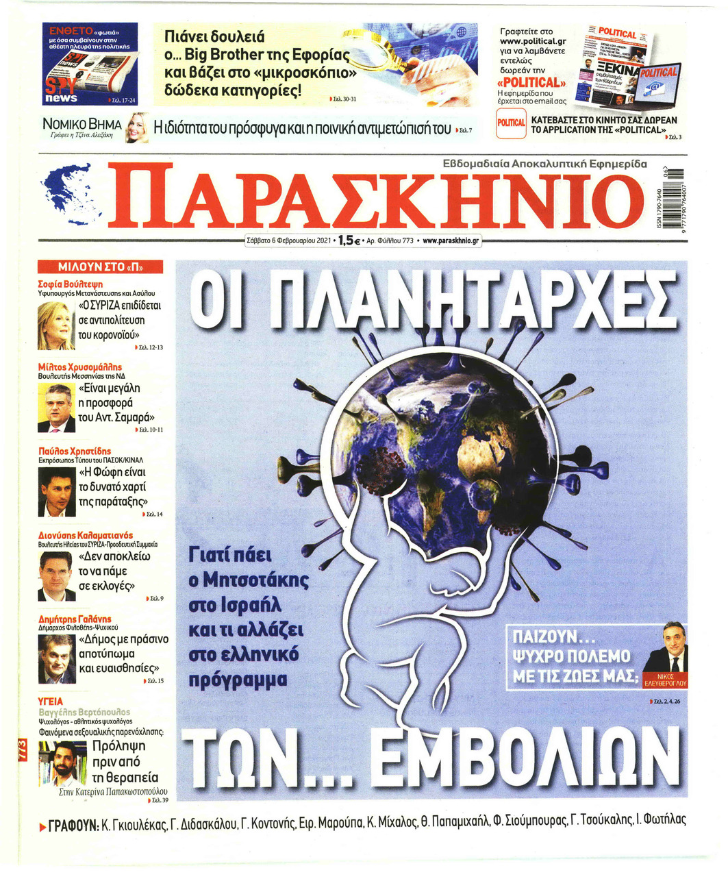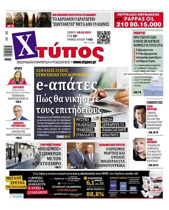 NewsMEDIA Διαβάστε όλα τα πρωτοσέλιδα των πολιτικών εφημερίδων του Σαββάτου 6 Φεβρουαρίου 2021 FacebookTwitterEmailViberWhatsAppCopy URLΤυπώνω Διαβάστε όλα τα πρωτοσέλιδα των πολιτικών εφημερίδων του Σαββάτου 6 Φεβρουαρίου. Πλήρης ενημέρωση με μια γρήγορη ματιά!
