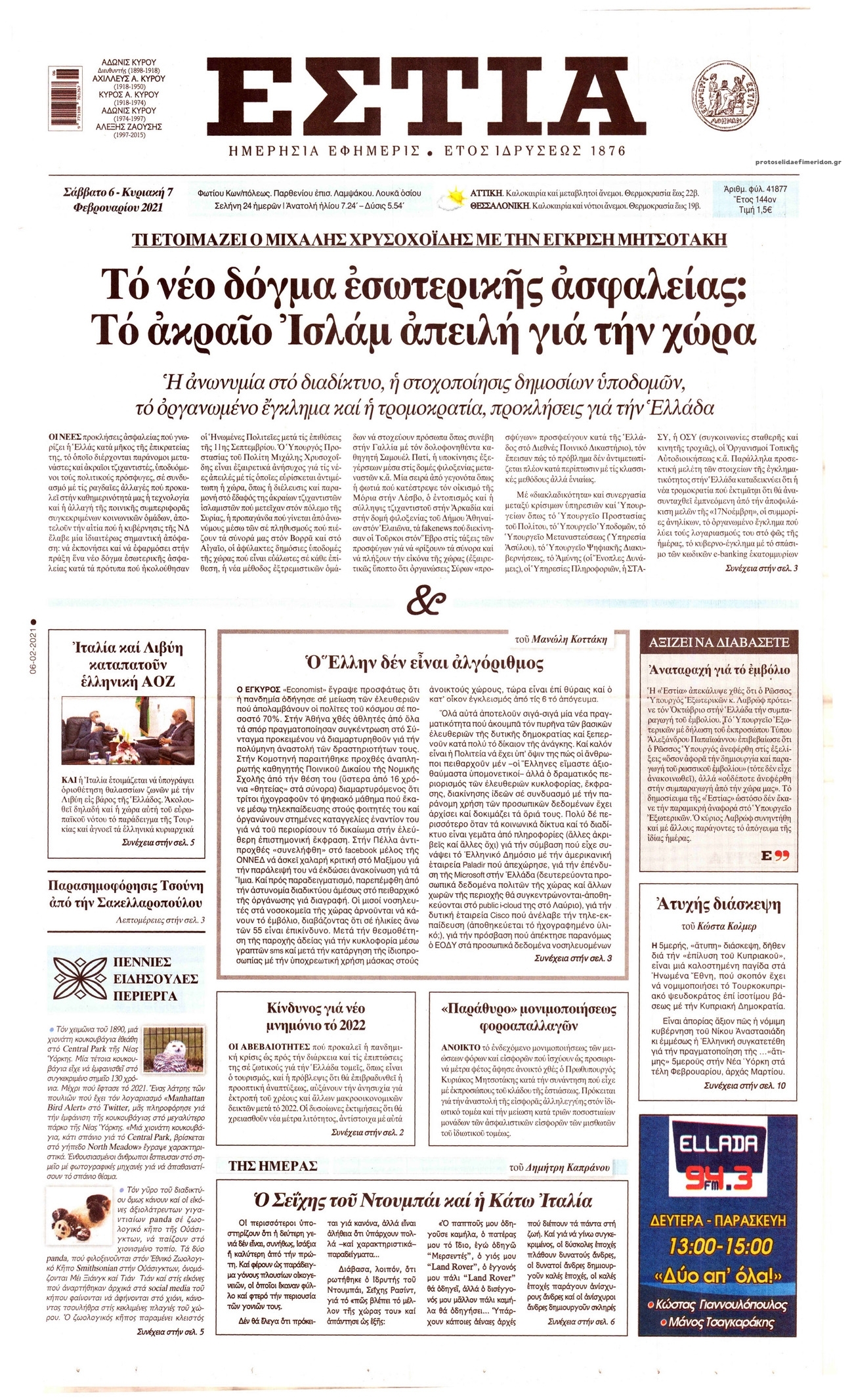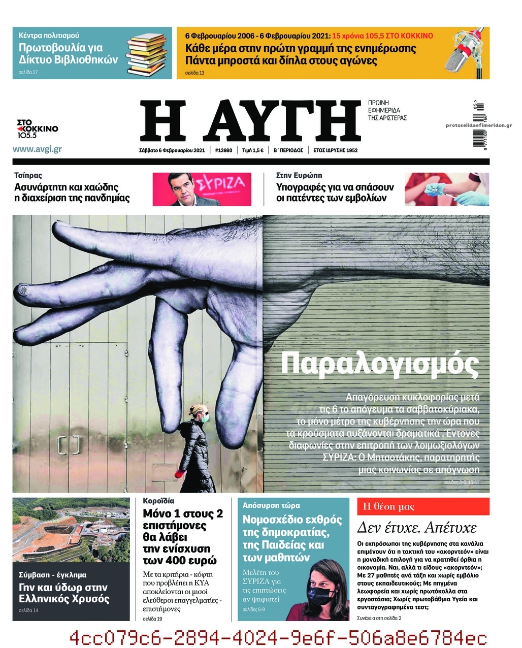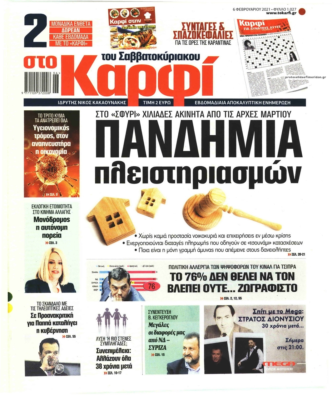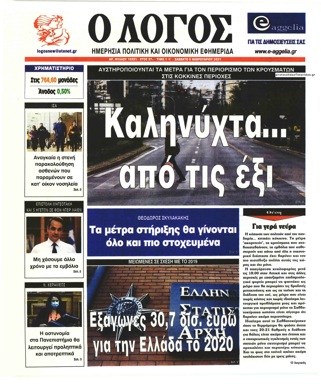 NewsMEDIA Διαβάστε όλα τα πρωτοσέλιδα των πολιτικών εφημερίδων του Σαββάτου 6 Φεβρουαρίου 2021 FacebookTwitterEmailViberWhatsAppCopy URLΤυπώνω Διαβάστε όλα τα πρωτοσέλιδα των πολιτικών εφημερίδων του Σαββάτου 6 Φεβρουαρίου. Πλήρης ενημέρωση με μια γρήγορη ματιά!