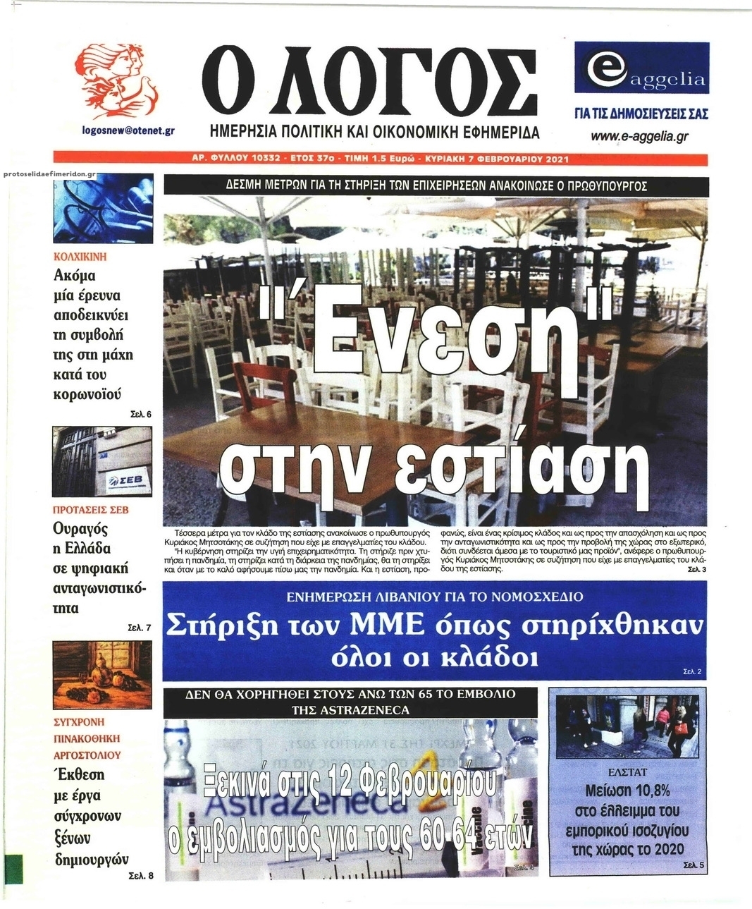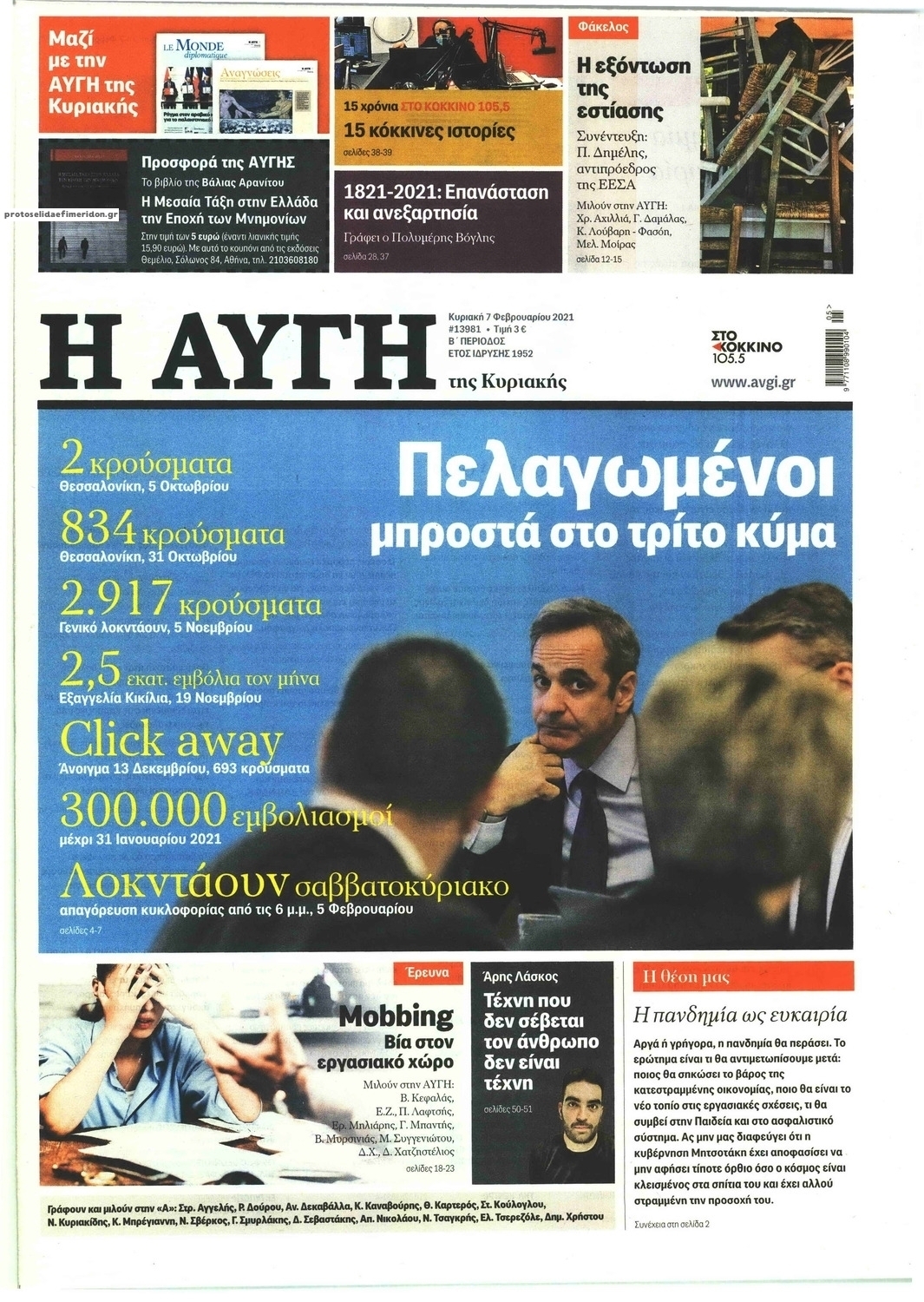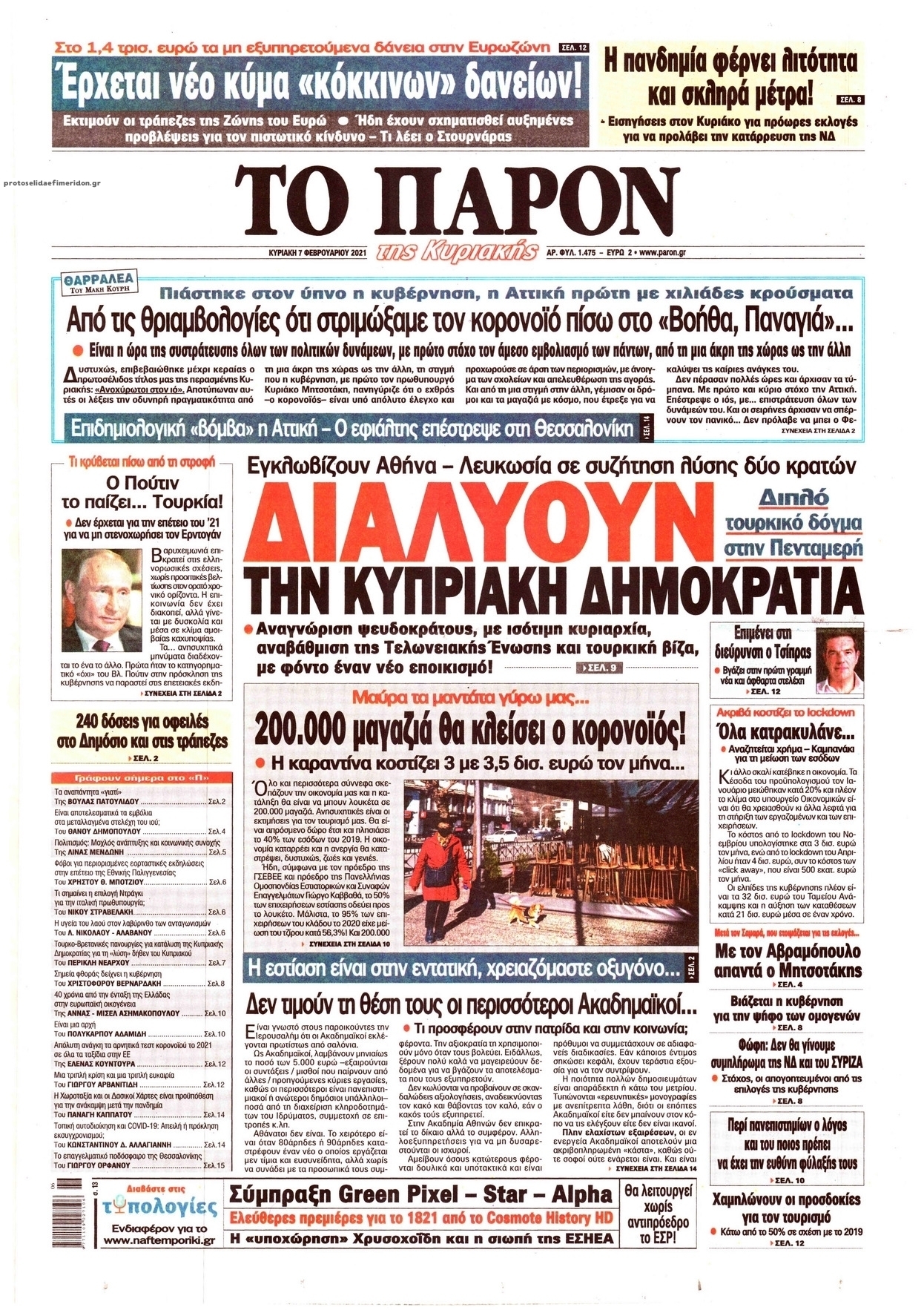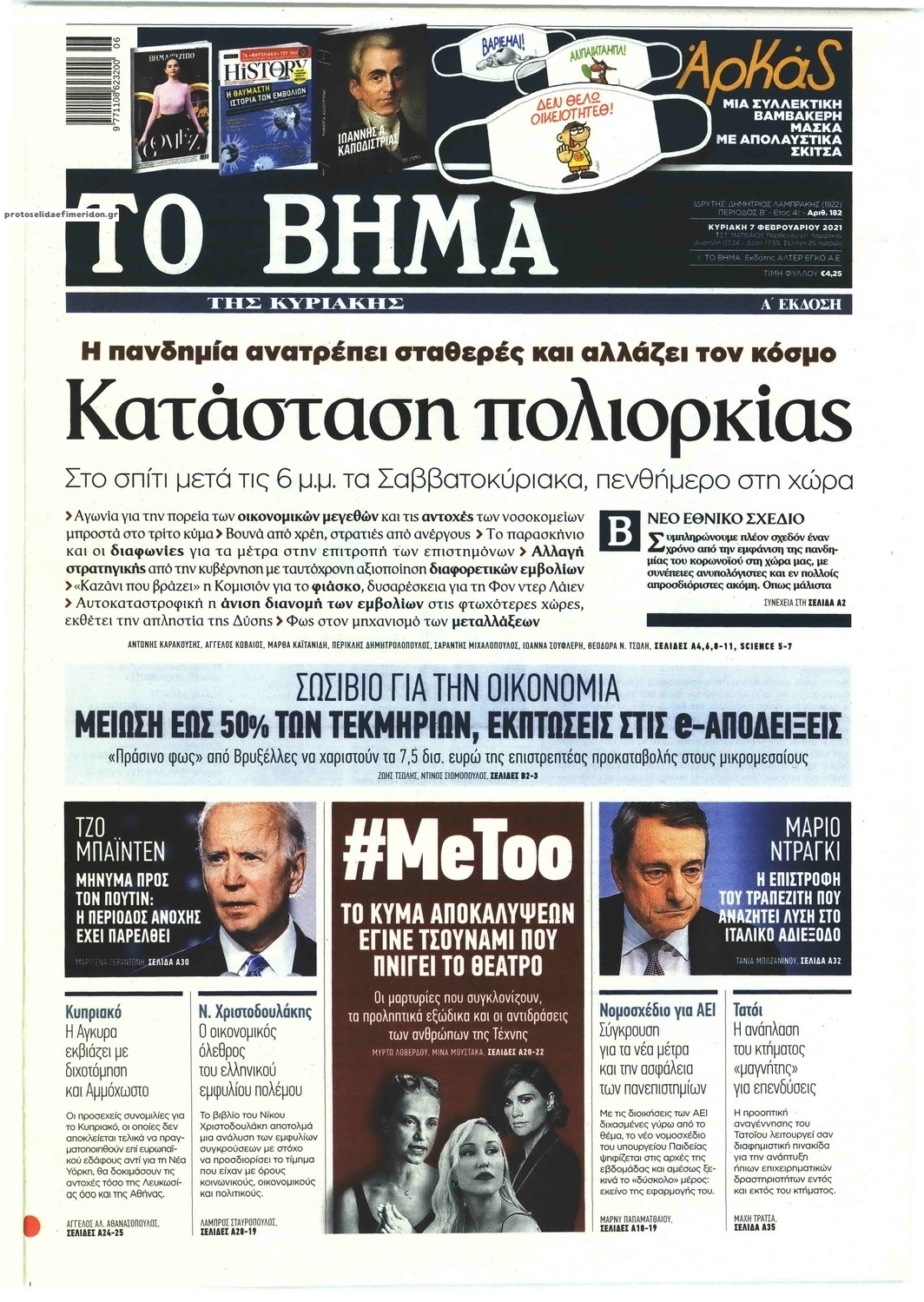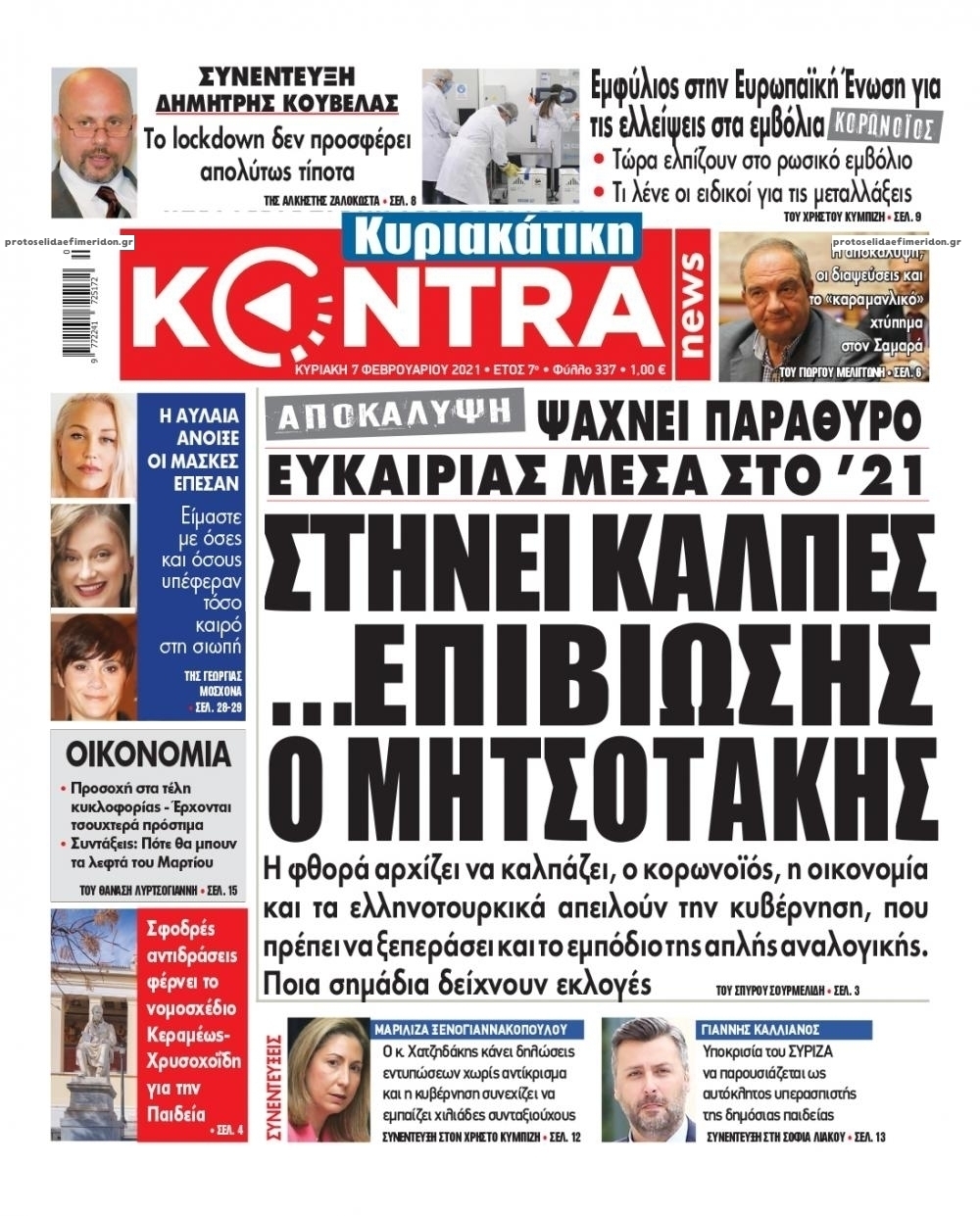 NewsMEDIA Διαβάστε όλα τα πρωτοσέλιδα των πολιτικών εφημερίδων της Κυριακής 7 Φεβρουαρίου 2021 FacebookTwitterEmailViberWhatsAppCopy URLΤυπώνω Διαβάστε όλα τα πρωτοσέλιδα των πολιτικών εφημερίδων της Κυριακής 7 Φεβρουαρίου. Πλήρης ενημέρωση με μια γρήγορη ματιά!