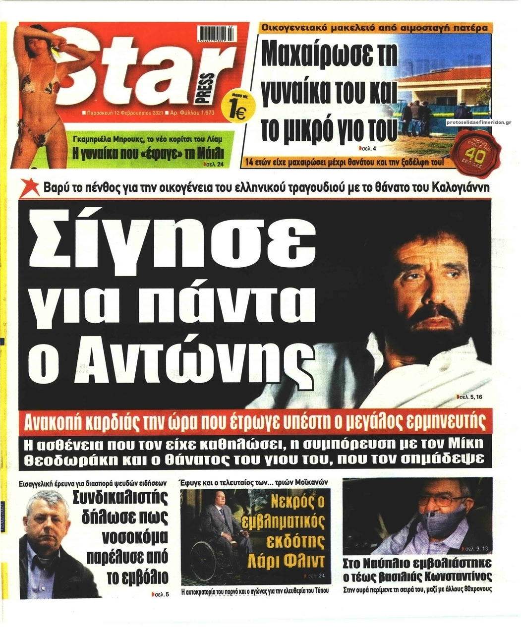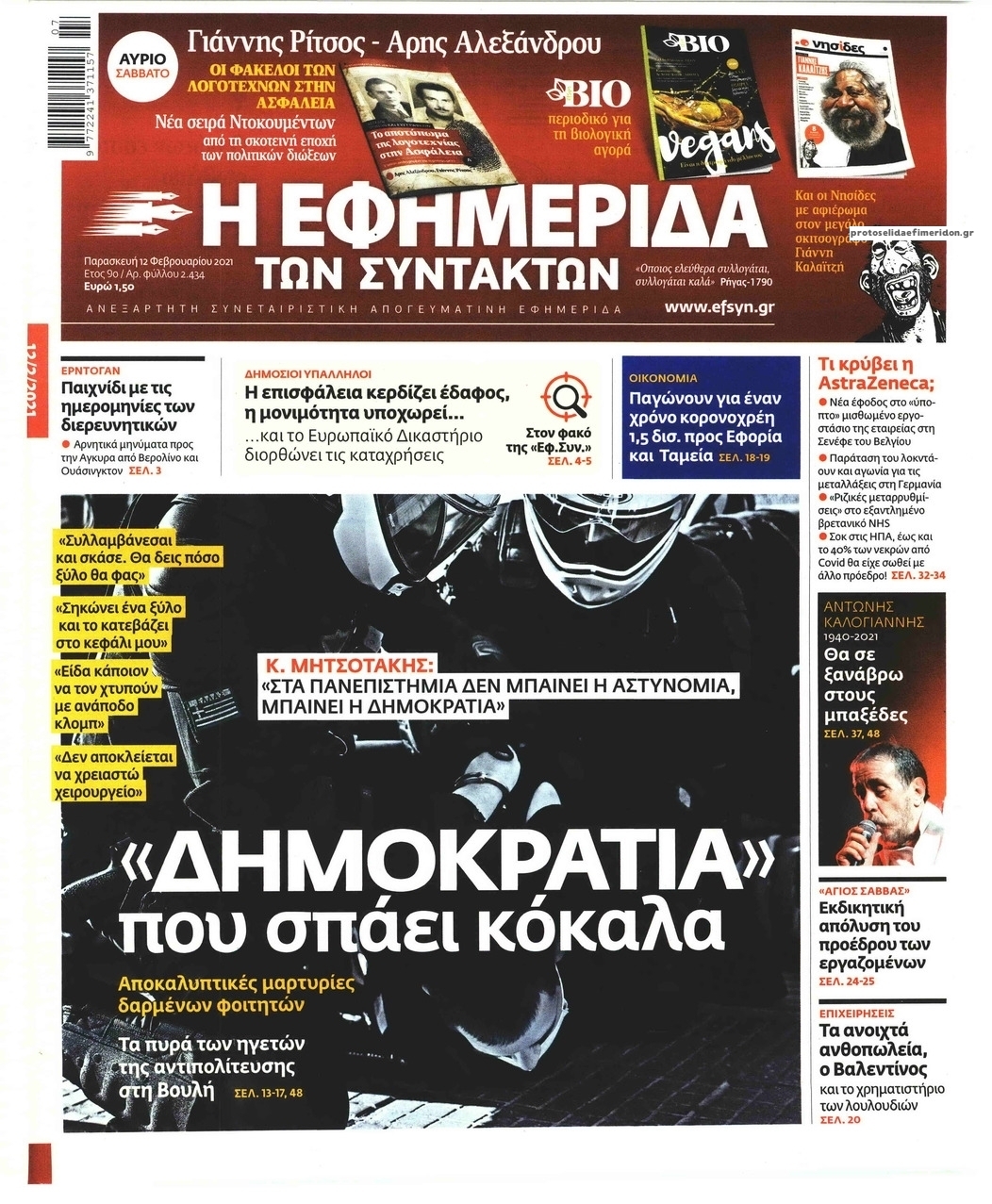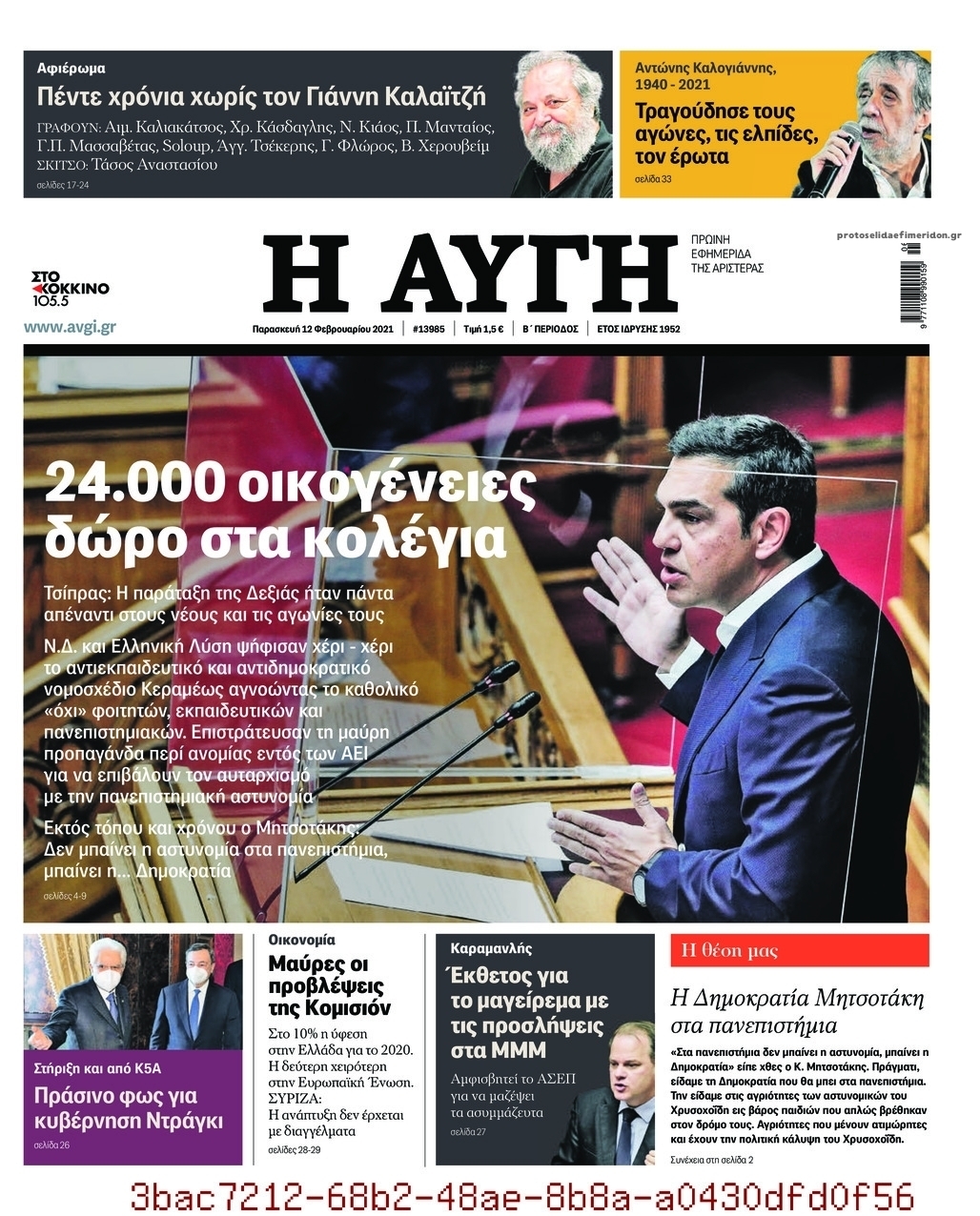 NewsMEDIASLIDER Διαβάστε όλα τα πρωτοσέλιδα των πολιτικών εφημερίδων της Παρασκευής 12 Φεβρουαρίου 2021 FacebookTwitterEmailViberWhatsAppCopy URLΤυπώνω Διαβάστε όλα τα πρωτοσέλιδα των πολιτικών εφημερίδων της Παρασκευής 12 Φεβρουαρίου. Πλήρης ενημέρωση με μια γρήγορη ματιά!