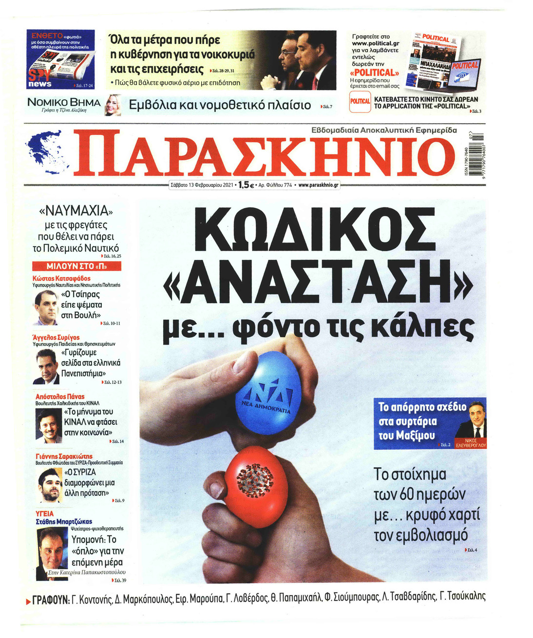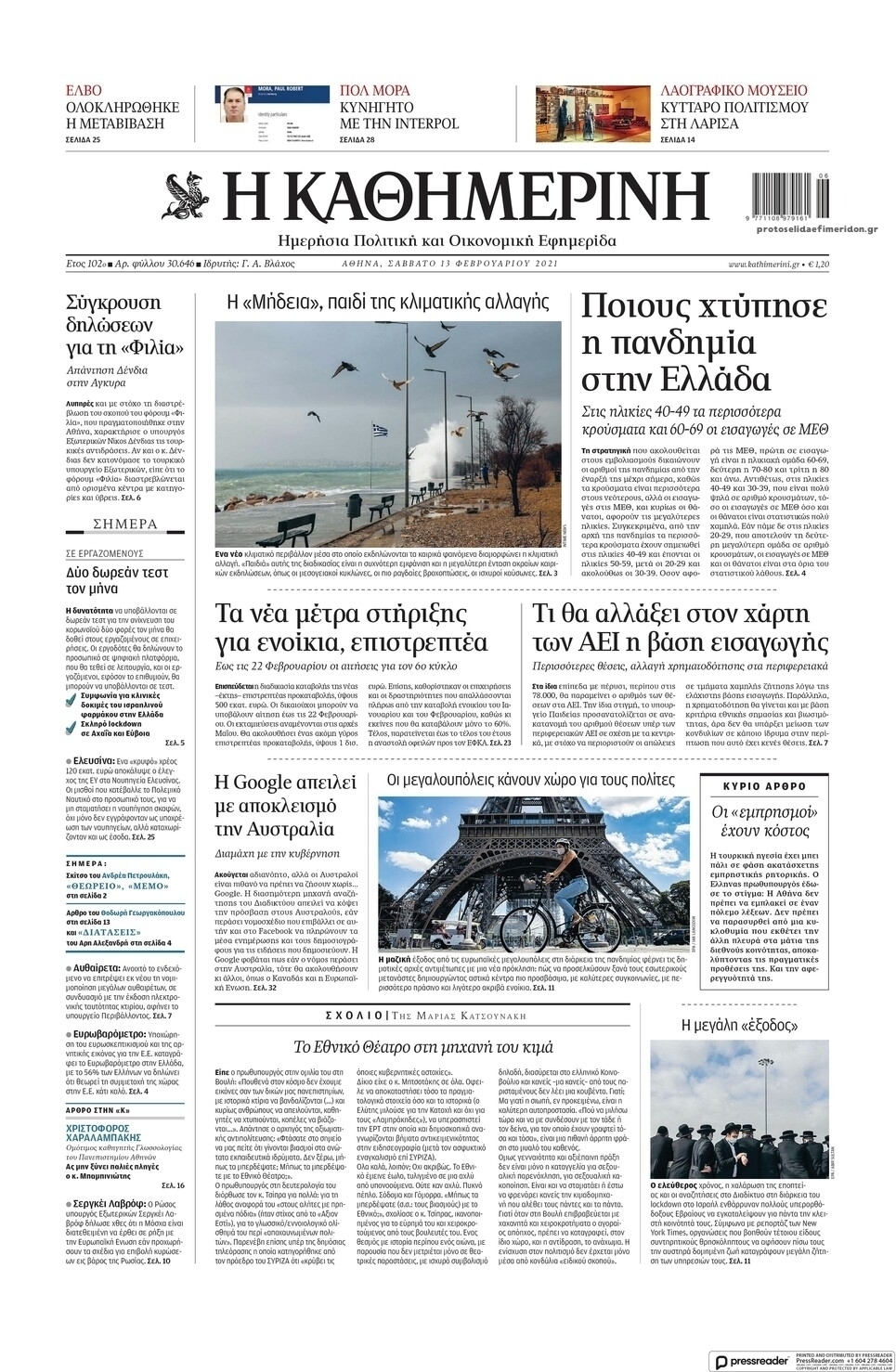 NewsMEDIA Διαβάστε όλα τα πρωτοσέλιδα των πολιτικών εφημερίδων του Σαββάτου 13 Φεβρουαρίου 2021 FacebookTwitterEmailViberWhatsAppCopy URLΤυπώνω Διαβάστε όλα τα πρωτοσέλιδα των πολιτικών εφημερίδων του Σαββάτου 13 Φεβρουαρίου. Πλήρης ενημέρωση με μια γρήγορη ματιά!