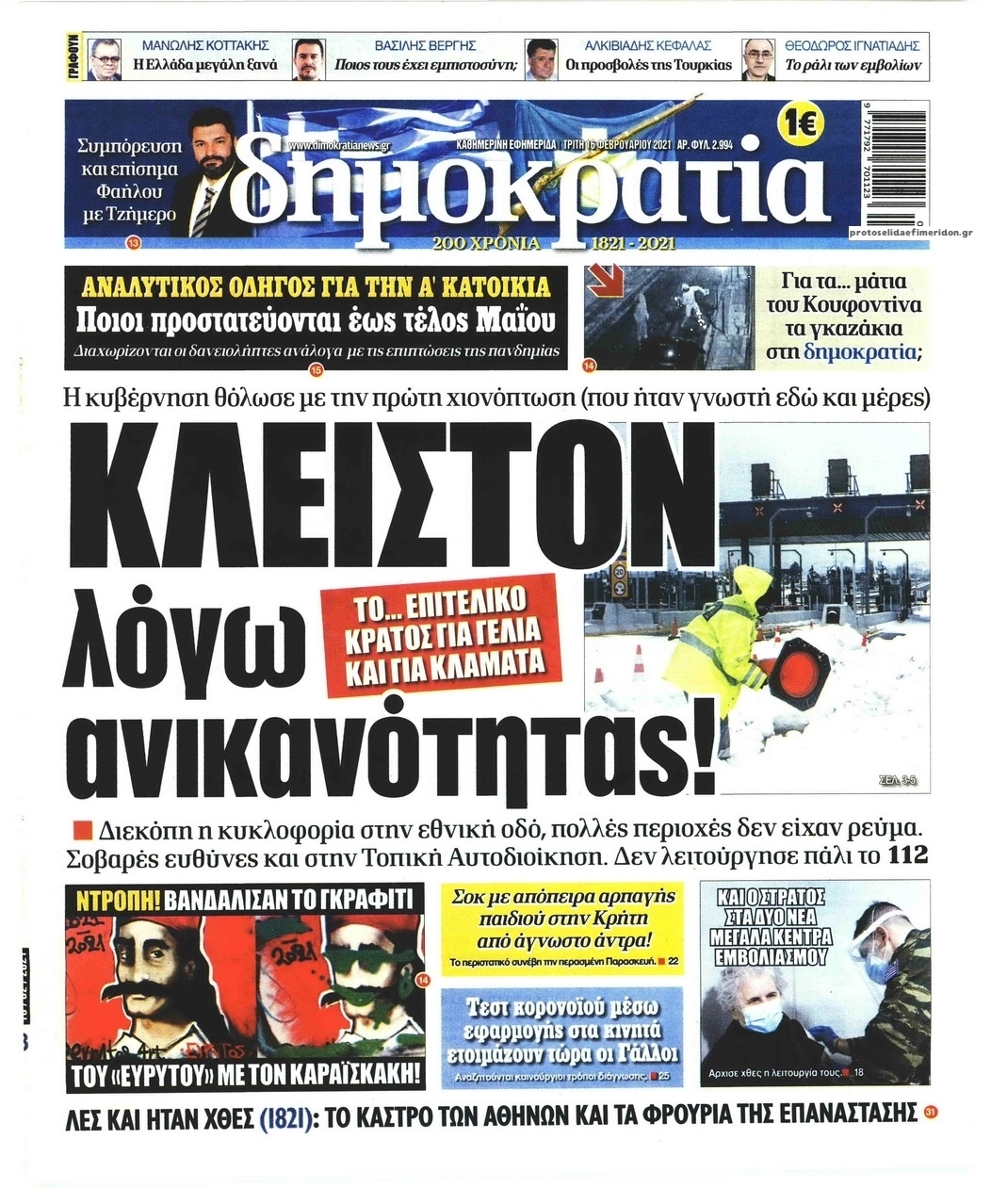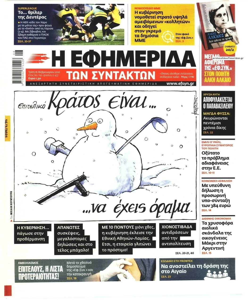 NewsMEDIA Διαβάστε όλα τα πρωτοσέλιδα των πολιτικών εφημερίδων της Τρίτης 16 Φεβρουαρίου 2021 FacebookTwitterEmailViberWhatsAppCopy URLΤυπώνω Διαβάστε όλα τα πρωτοσέλιδα των πολιτικών εφημερίδων της Τρίτης 16 Φεβρουαρίου. Πλήρης ενημέρωση με μια γρήγορη ματιά!