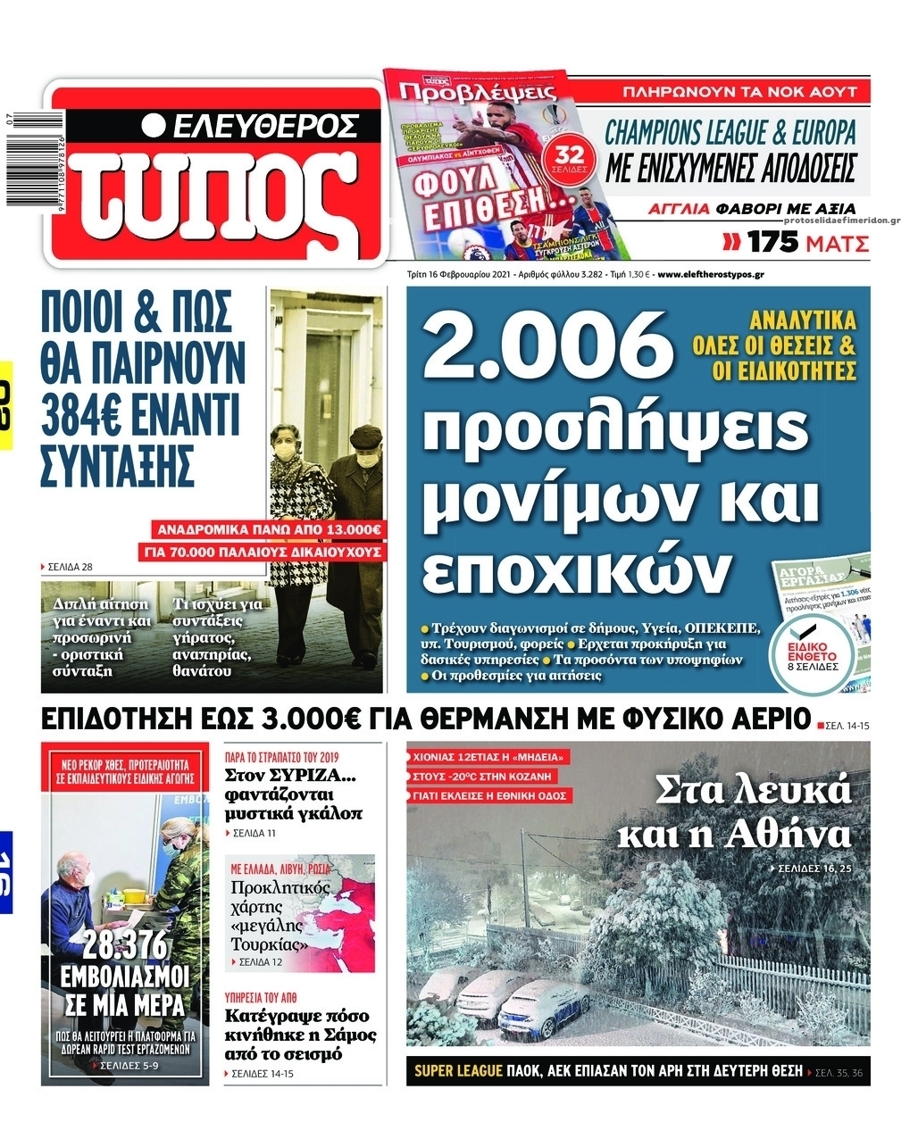 NewsMEDIA Διαβάστε όλα τα πρωτοσέλιδα των πολιτικών εφημερίδων της Τρίτης 16 Φεβρουαρίου 2021 FacebookXEmailViberWhatsAppCopy URLΤυπώνω Διαβάστε όλα τα πρωτοσέλιδα των πολιτικών εφημερίδων της Τρίτης 16 Φεβρουαρίου. Πλήρης ενημέρωση με μια γρήγορη ματιά!
