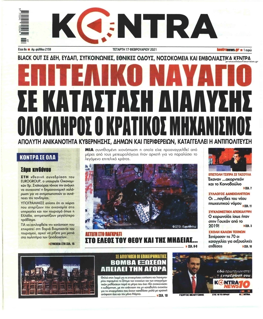 NewsMEDIASLIDER Διαβάστε όλα τα πρωτοσέλιδα των πολιτικών εφημερίδων της Τετάρτης 17 Φεβρουαρίου 2021 FacebookTwitterEmailViberWhatsAppCopy URLΤυπώνω Διαβάστε όλα τα πρωτοσέλιδα των πολιτικών εφημερίδων της Τετάρτης 17 Φεβρουαρίου. Πλήρης ενημέρωση με μια γρήγορη ματιά!