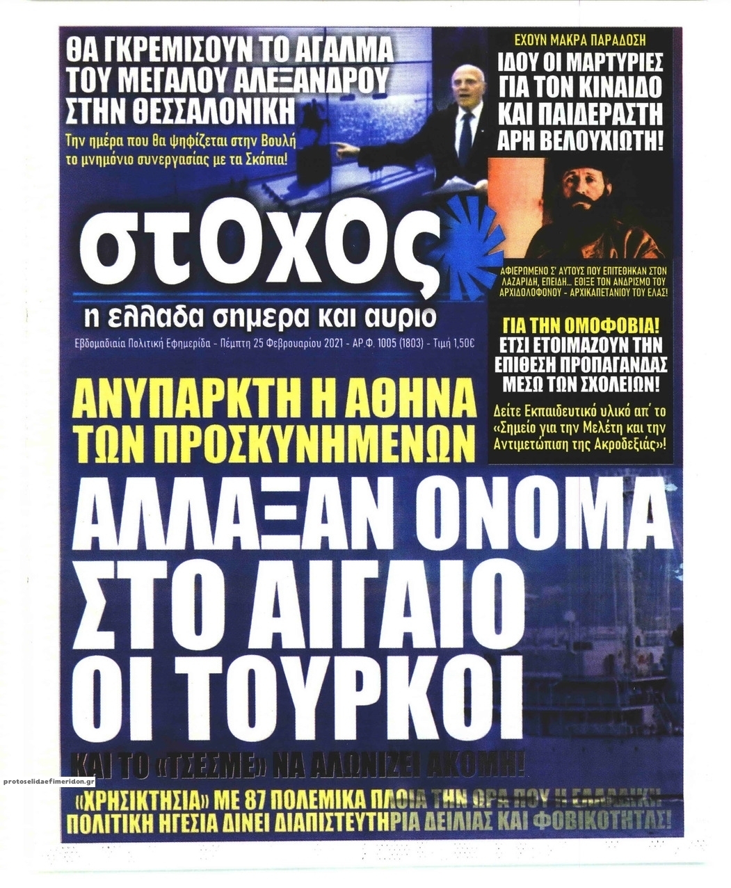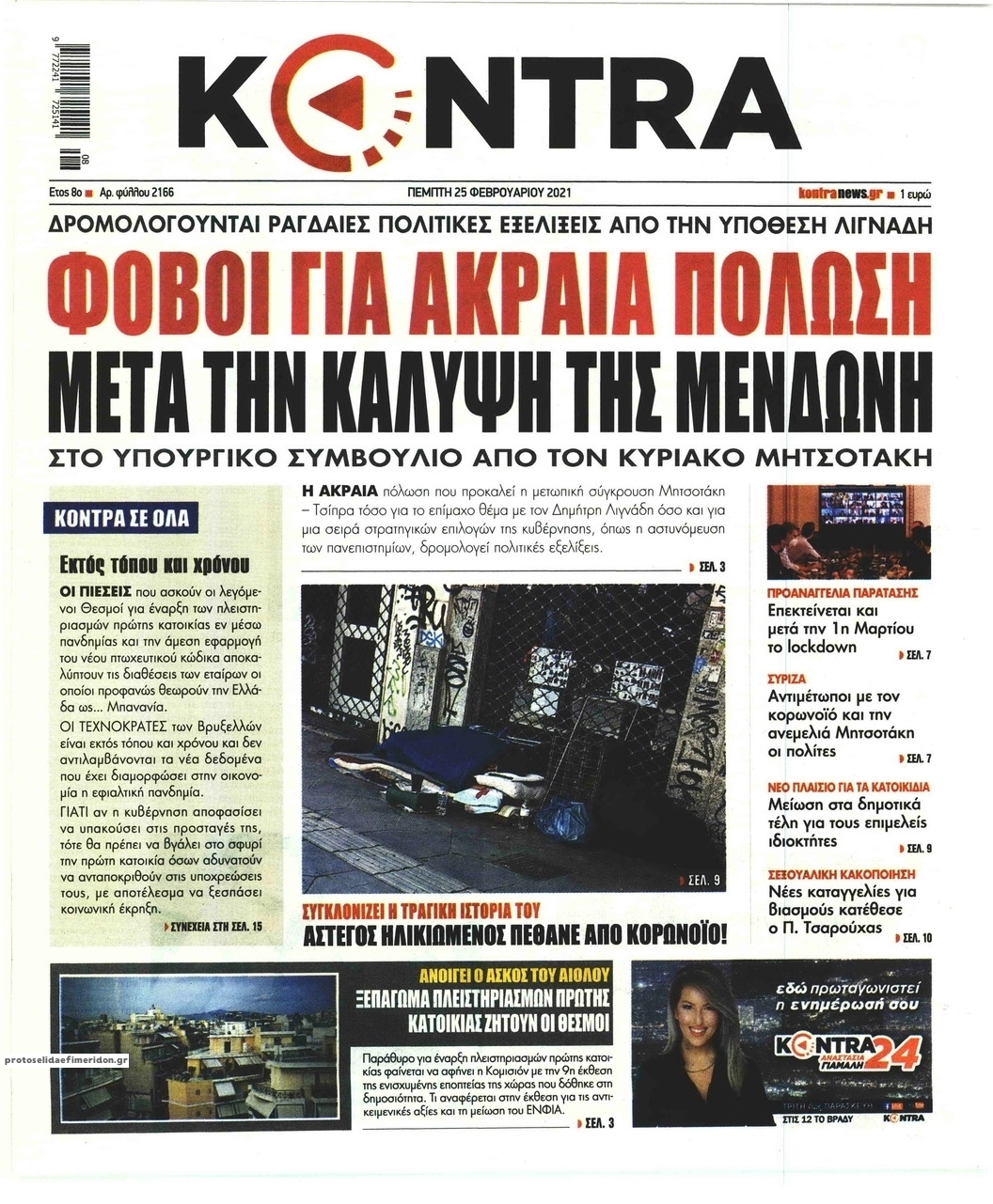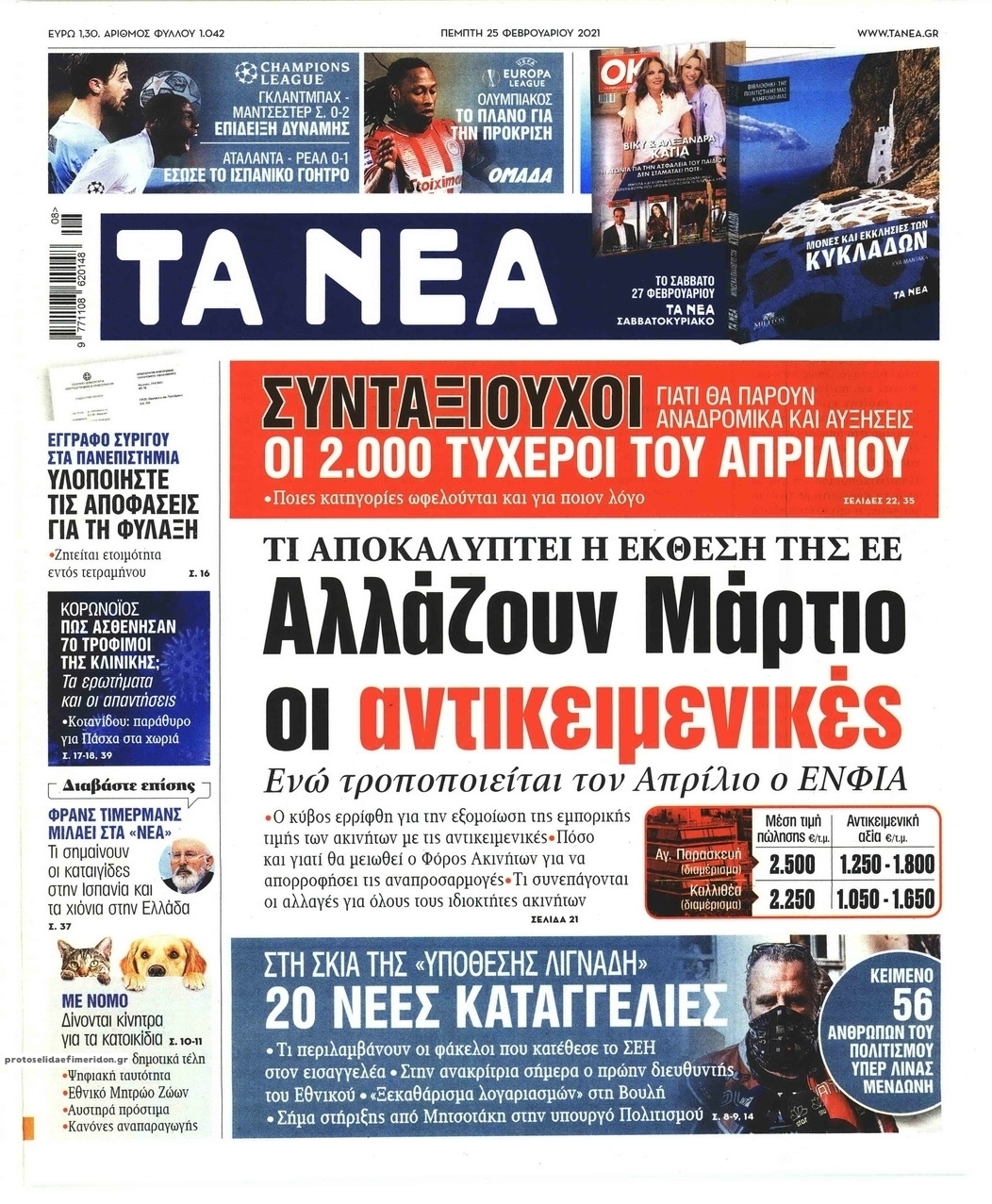 NewsMEDIA Διαβάστε όλα τα πρωτοσέλιδα των πολιτικών εφημερίδων της Πέμπτης 25 Φεβρουαρίου 2021 FacebookTwitterEmailViberWhatsAppCopy URLΤυπώνω Διαβάστε όλα τα πρωτοσέλιδα των πολιτικών εφημερίδων της Πέμπτης 25 Φεβρουαρίου. Πλήρης ενημέρωση με μια γρήγορη ματιά!