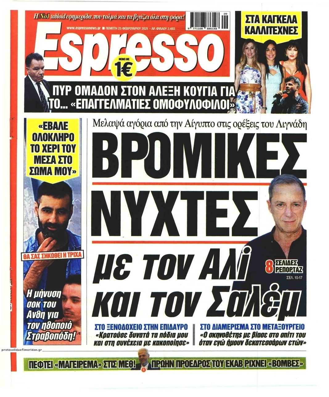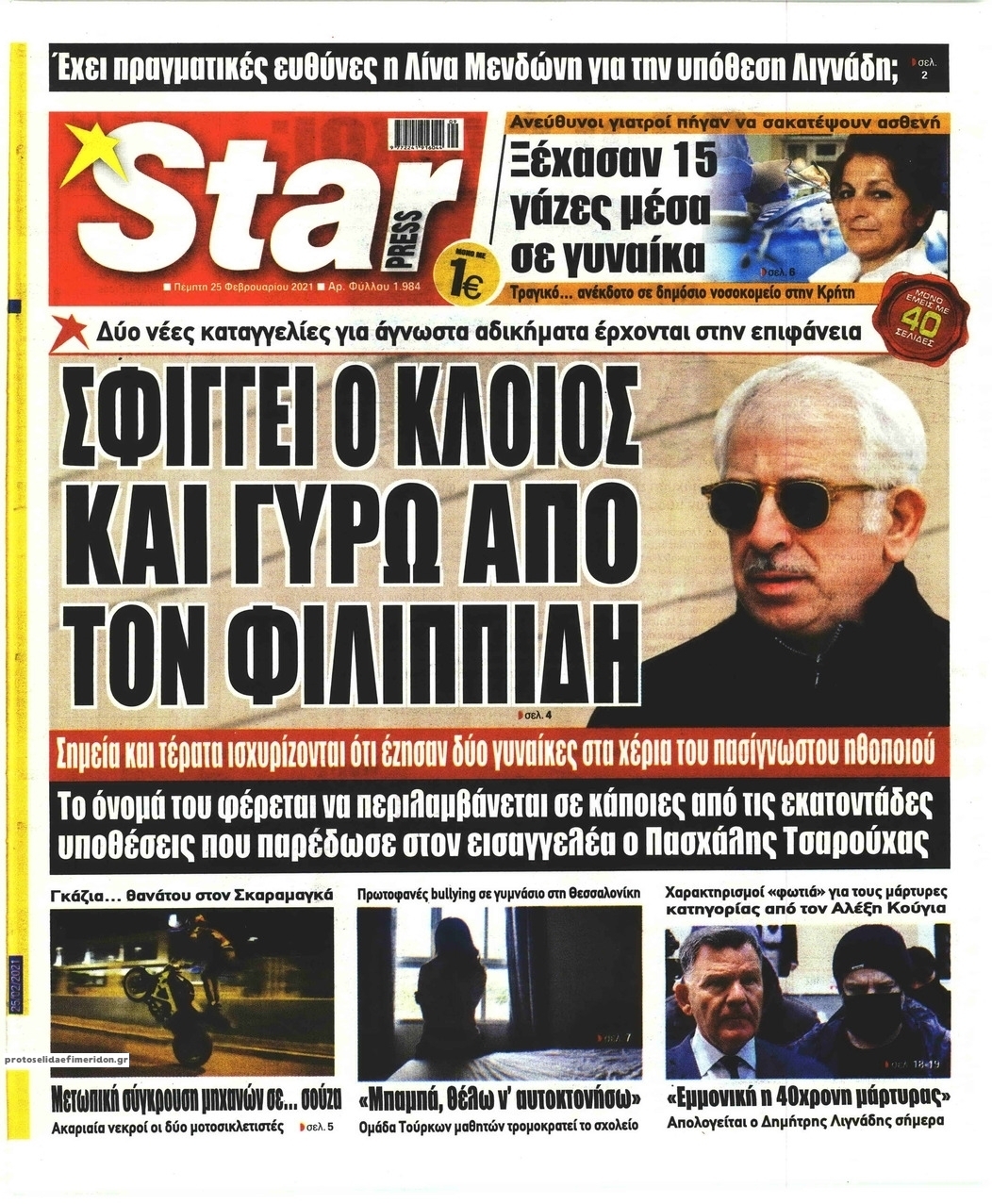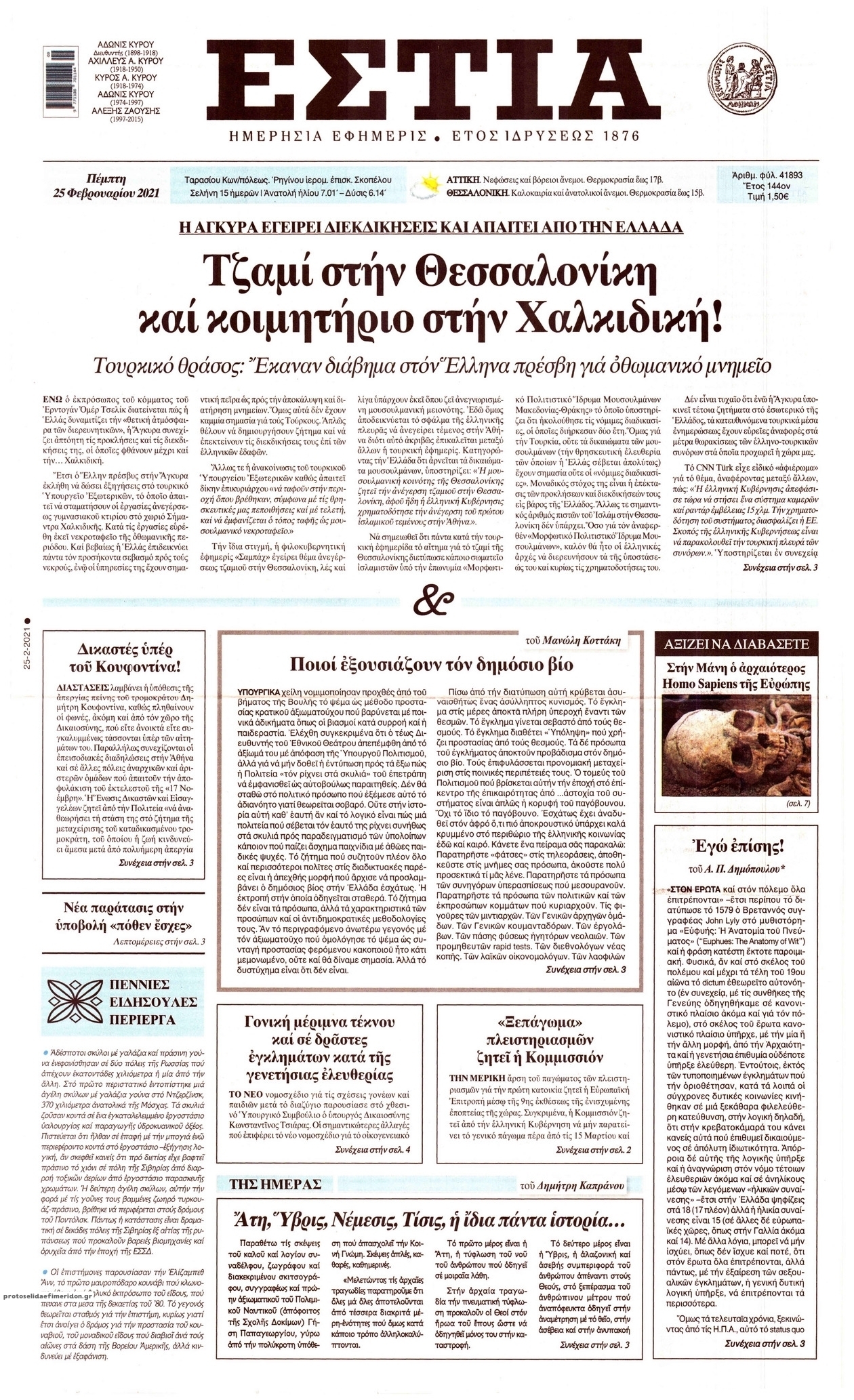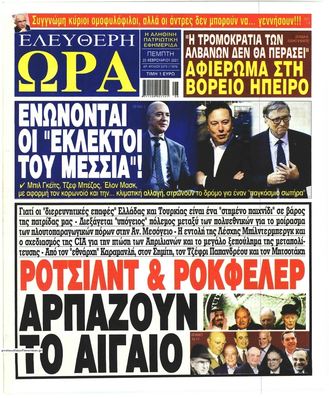 NewsMEDIA Διαβάστε όλα τα πρωτοσέλιδα των πολιτικών εφημερίδων της Πέμπτης 25 Φεβρουαρίου 2021 FacebookTwitterEmailViberWhatsAppCopy URLΤυπώνω Διαβάστε όλα τα πρωτοσέλιδα των πολιτικών εφημερίδων της Πέμπτης 25 Φεβρουαρίου. Πλήρης ενημέρωση με μια γρήγορη ματιά!