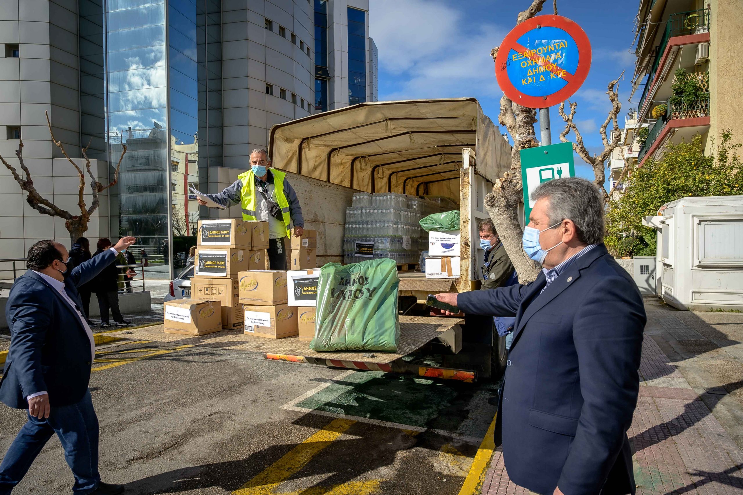 Στο Δημαρχείο Ιλίου συγκεντρώθηκαν εκατοντάδες συσκευασίες εμφιαλωμένων νερών, τροφίμων μακράς διαρκείας και ειδών ατομικής υγιεινής, τα οποία μεταφέρονται ήδη στην περιοχή, για να συνδράμουν στην προσπάθεια των τοπικών αρχών.