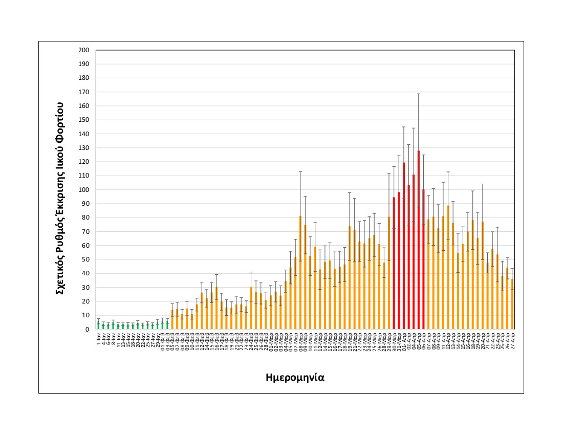 -Μειωμένη κατά 13% σε σχέση με τη μέση τιμή των δύο αμέσως προηγούμενων μετρήσεων, δηλαδή της Παρασκευής 23/04 και της Κυριακής 25/04.