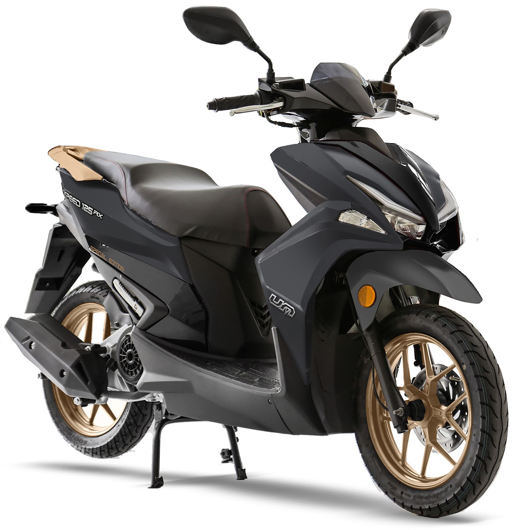 Πιο συγκεκριμένα, η UM, στην πρώτη κατηγορία δίκυκλων, διαθέτει το Flash 125LX, ενώ στην κατηγορία των scooters διαθέτει τα Chill 125 (στις εκδόσεις Sport και Classic) και το XPEED 125RX. Τέλος, στην κατηγορία των μοτοσυκλετών διατίθενται τα Renegade 125 (στις εκδόσεις Sport, Commando και Freedom) και Renegade 300 (στις εκδόσεις Commando και Freedom).