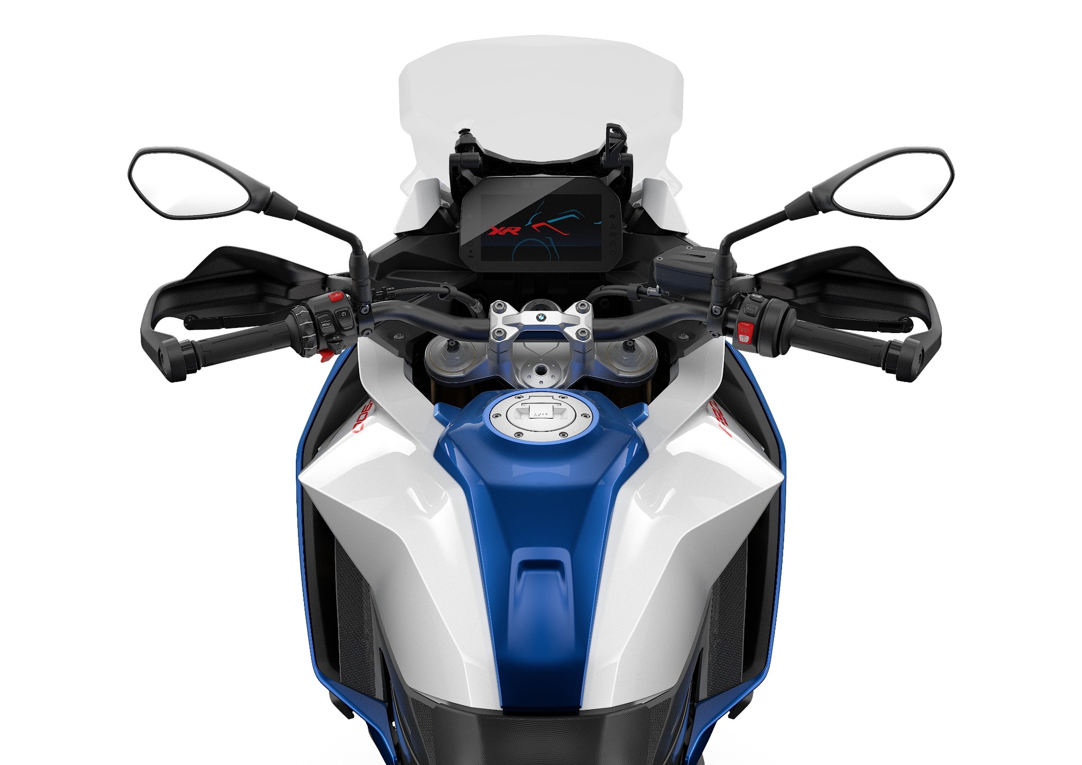 Βελτιωμένη αεροδυναμική και προστατευτικά χεριών (χούφτες) στον στάνταρ εξοπλισμό της BMW F 900 XR.